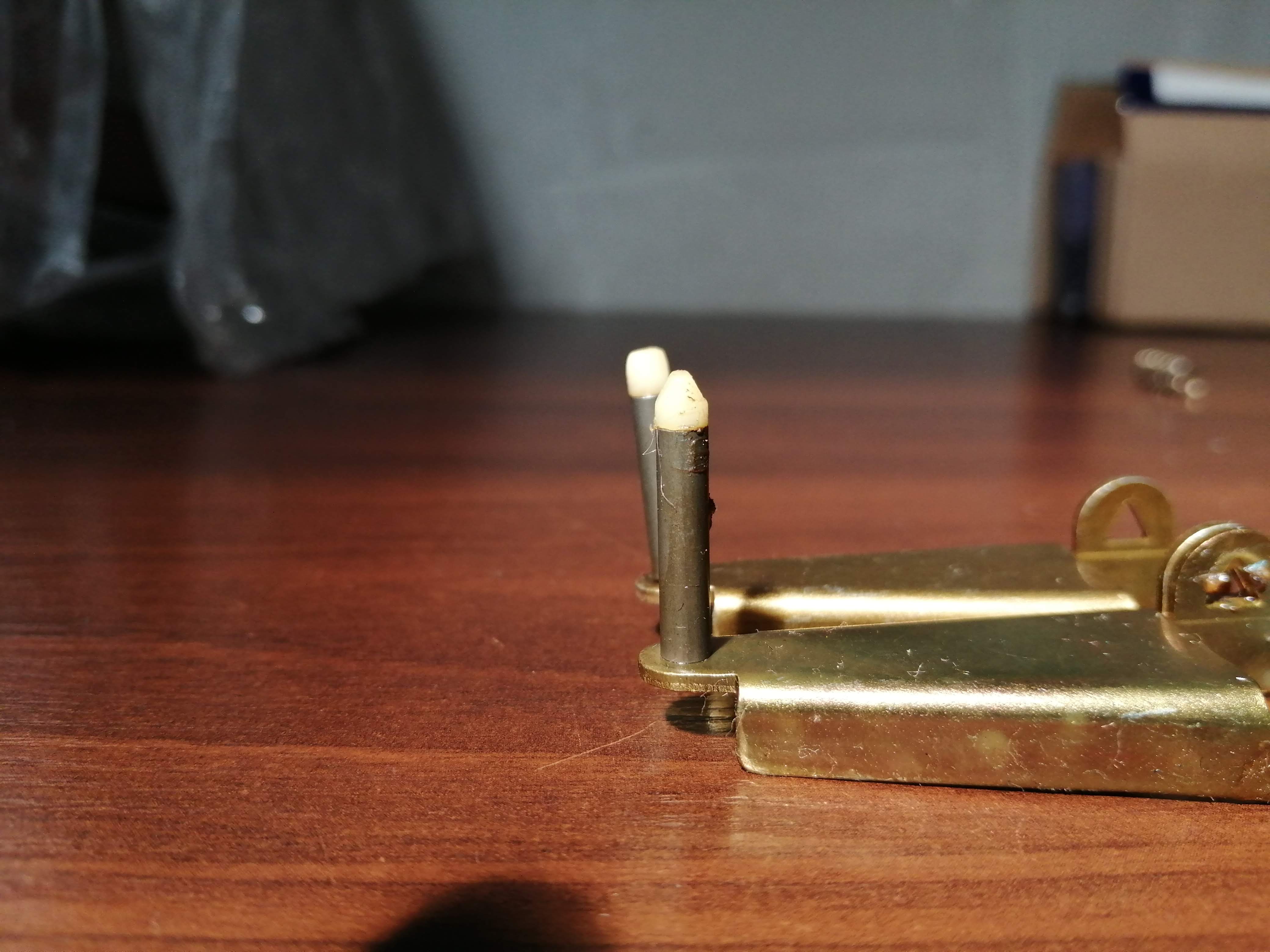 Czyszczenie styków. Styki z lewej nie ruszane a po prawej wyczyszczone.