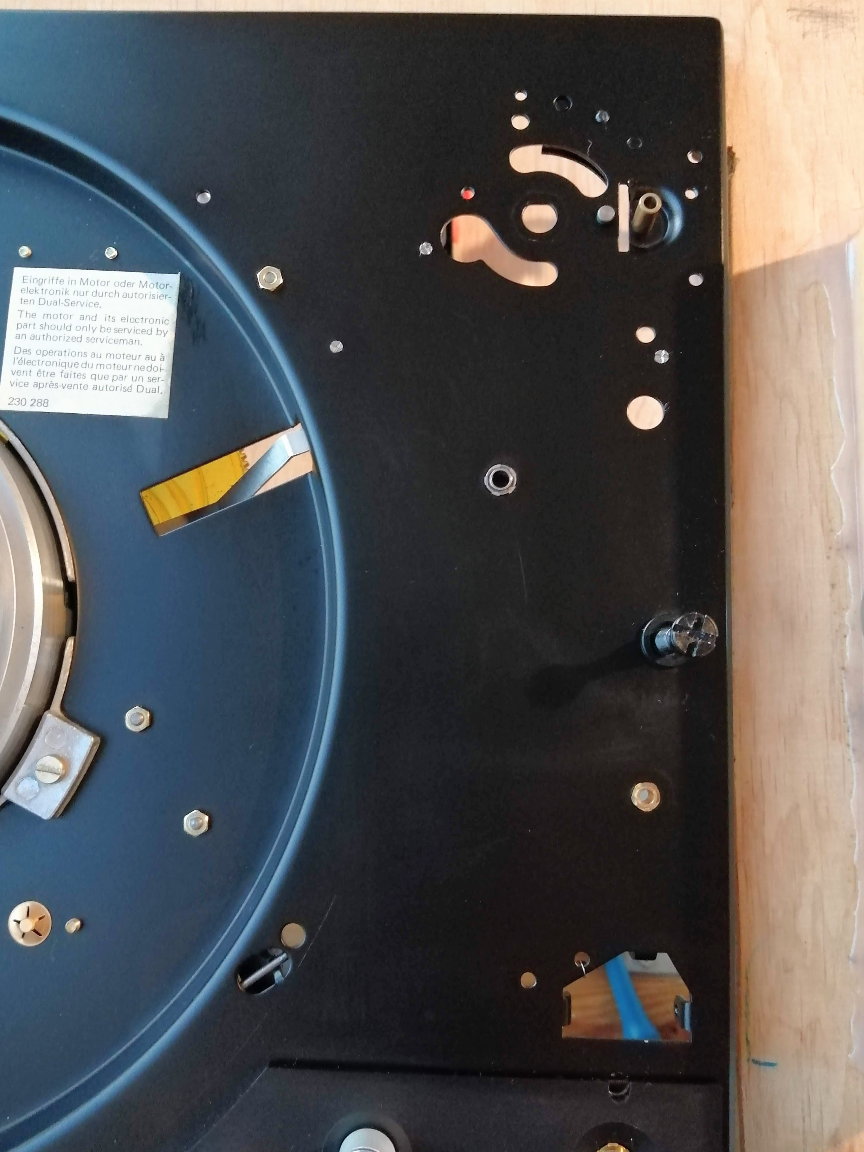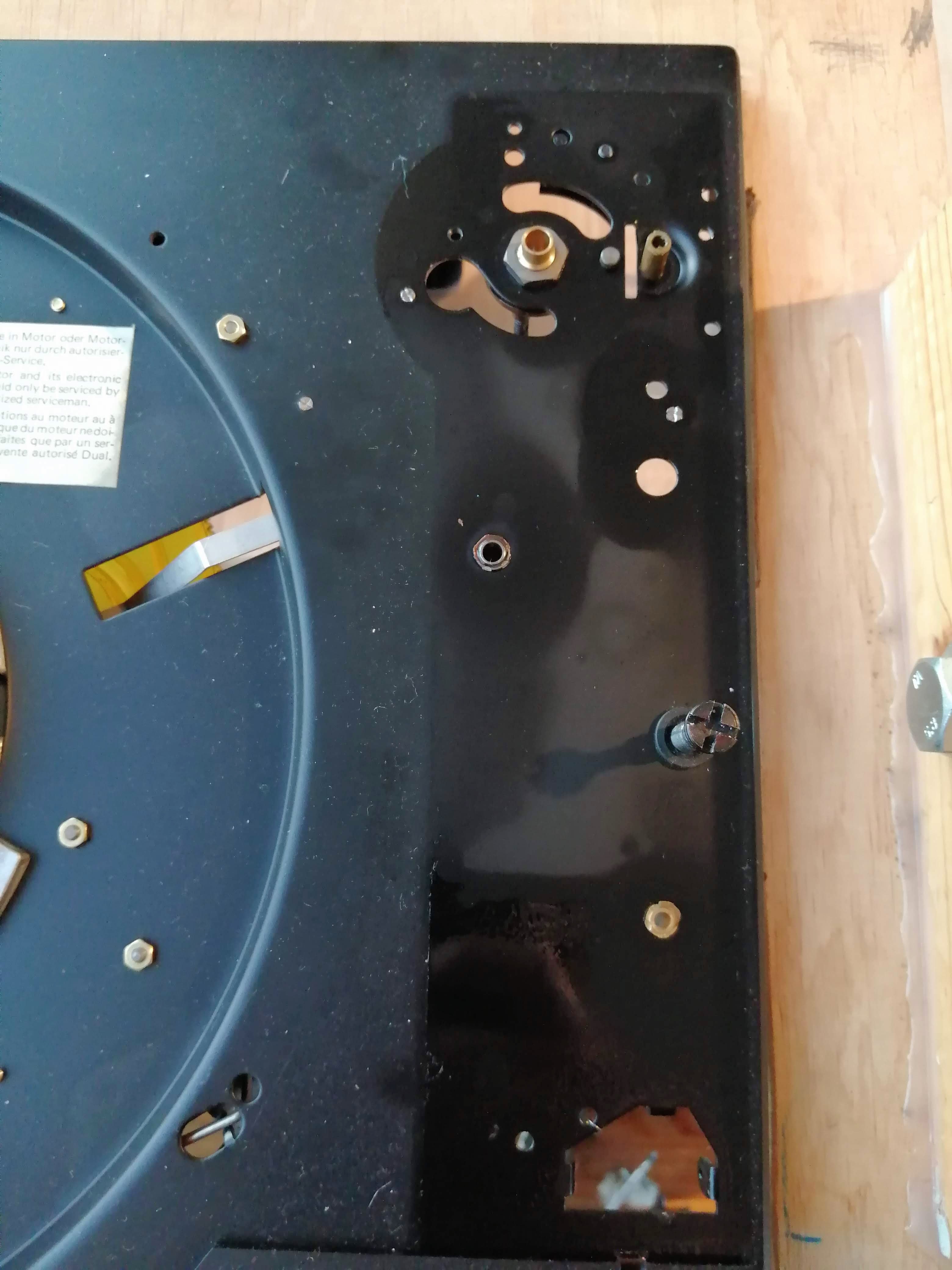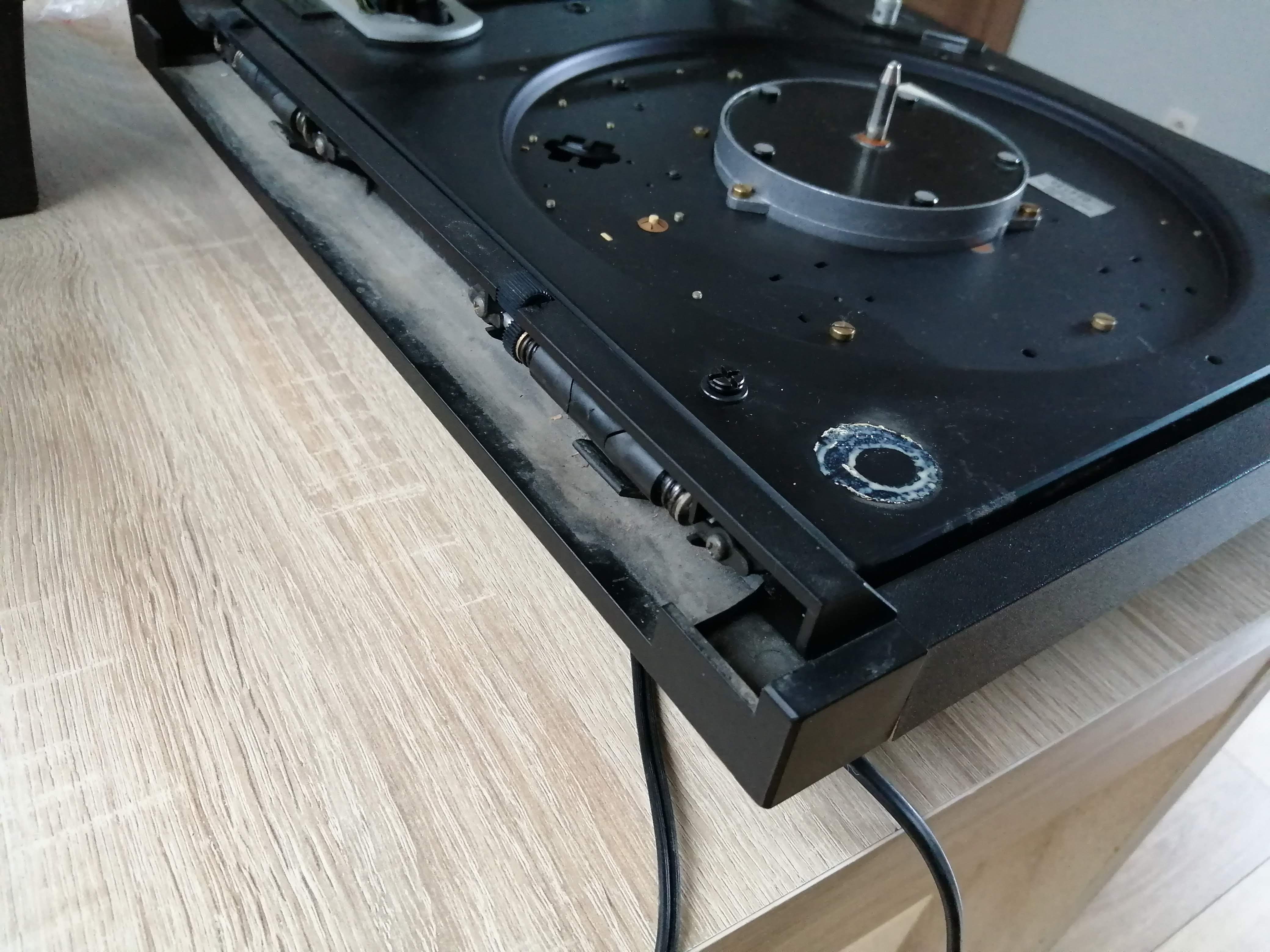 Celowo nie piszę kogo to dotyczy, bo nie znam ustaleń i zakresu prac jakie były podejmowane. Więc może jak coś nie było zrobione, to może takie były ustalenia. Nie wiem. Właściciel już szczegółów nie pamiętał. Nie wiem też czy w takim stanie jaki ja zastałem, wrócił wcześniej do właściciela z serwisu, czy też doszły jeszcze jakieś uszkodzenia później. Wiem tylko, że Dual ten był po jakiejś przygodzie transportowej i doszło do uszkodzeń w obszarze ramienia i rzekomo miało to zostać naprawione. Miałem tylko postawić przysłowiową "kropkę nad i" w postaci ogólnego sprawdzenia i wymiany kondensatorów w elektronice silnika, bo te nie były ruszane. Praca lekka i przyjemna mówili