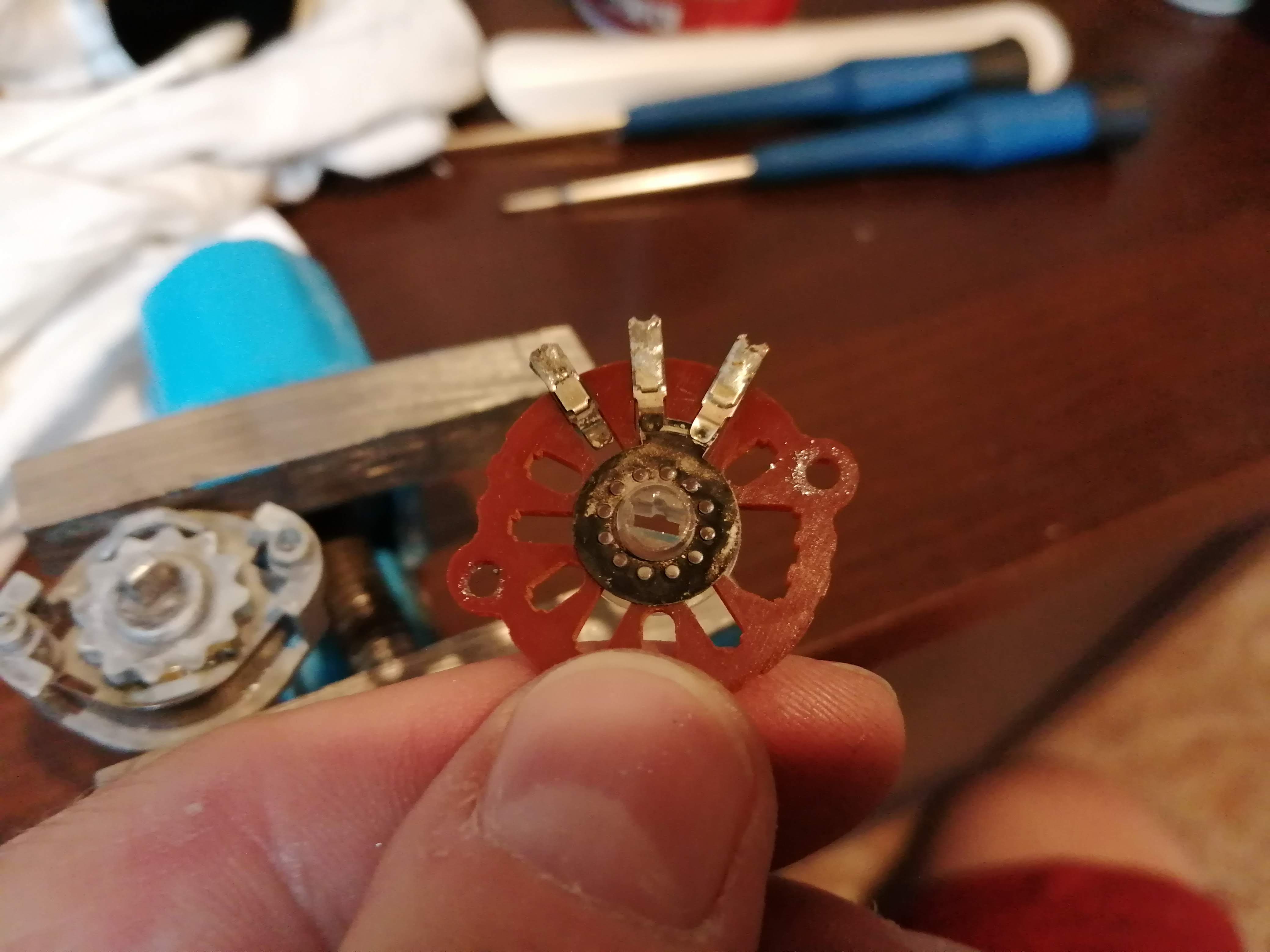 niewyczyszczone styki. Widać próbę czyszczenia styków headschella, ale nie zostało to dobrze zrobione.