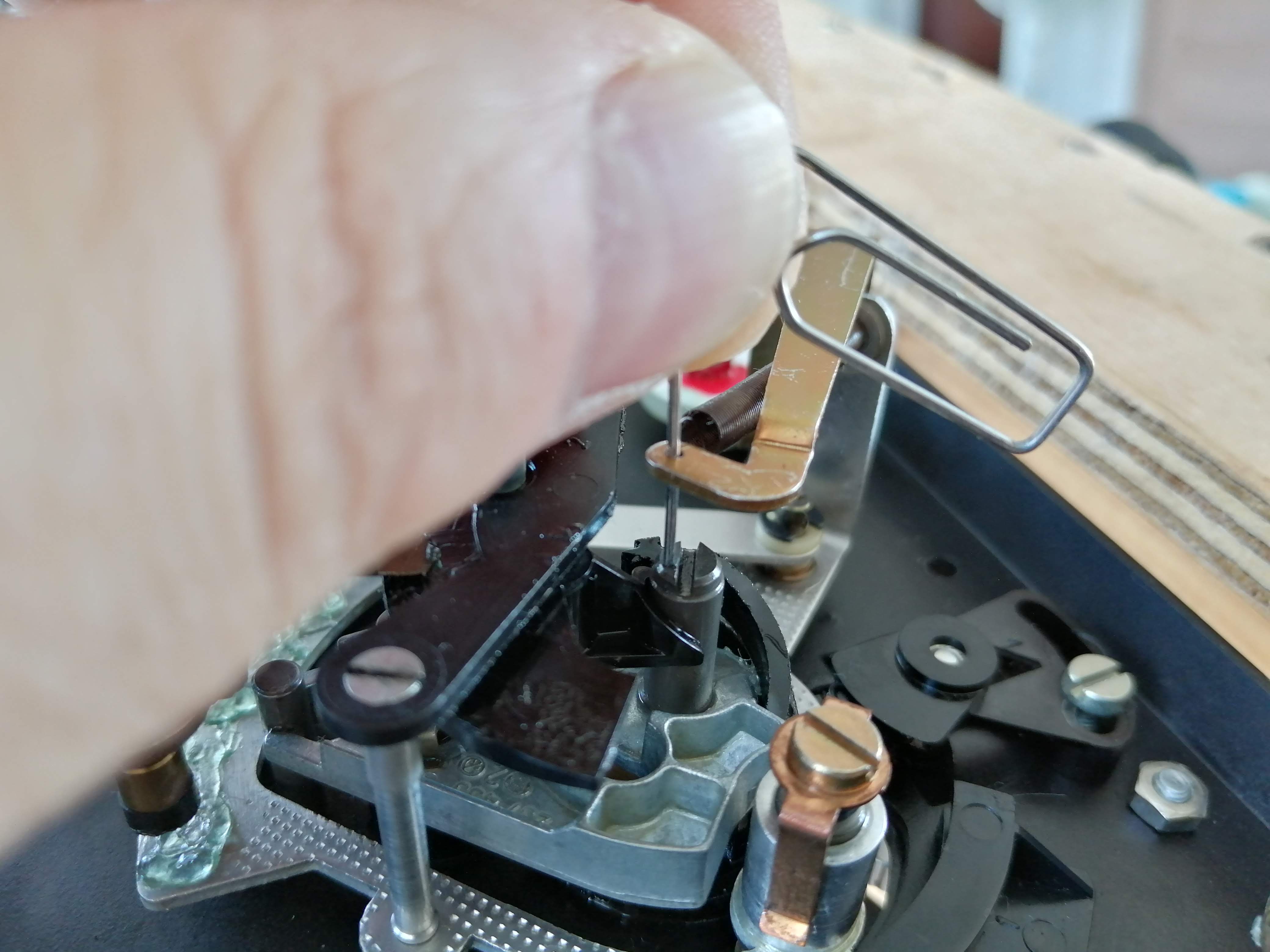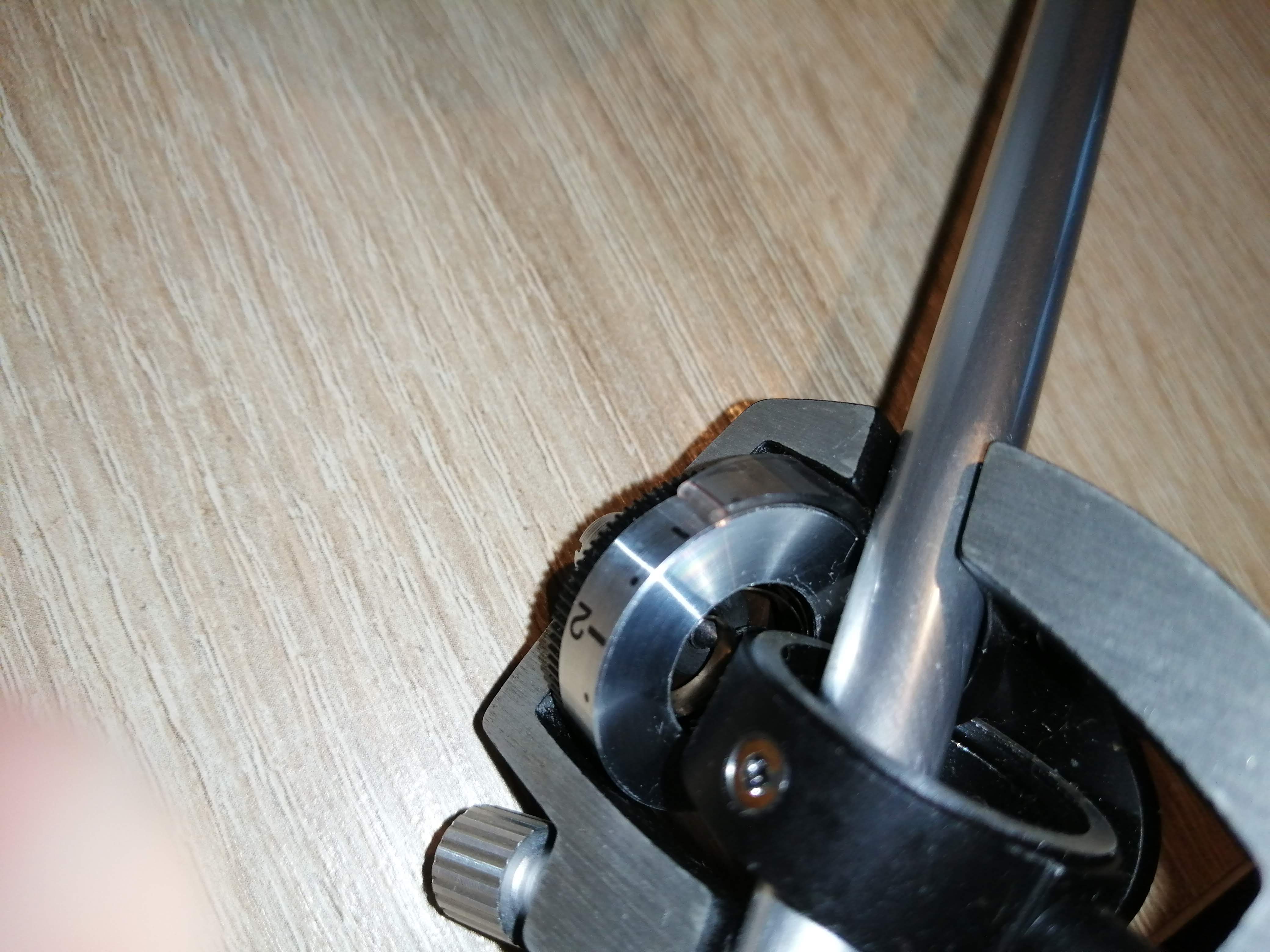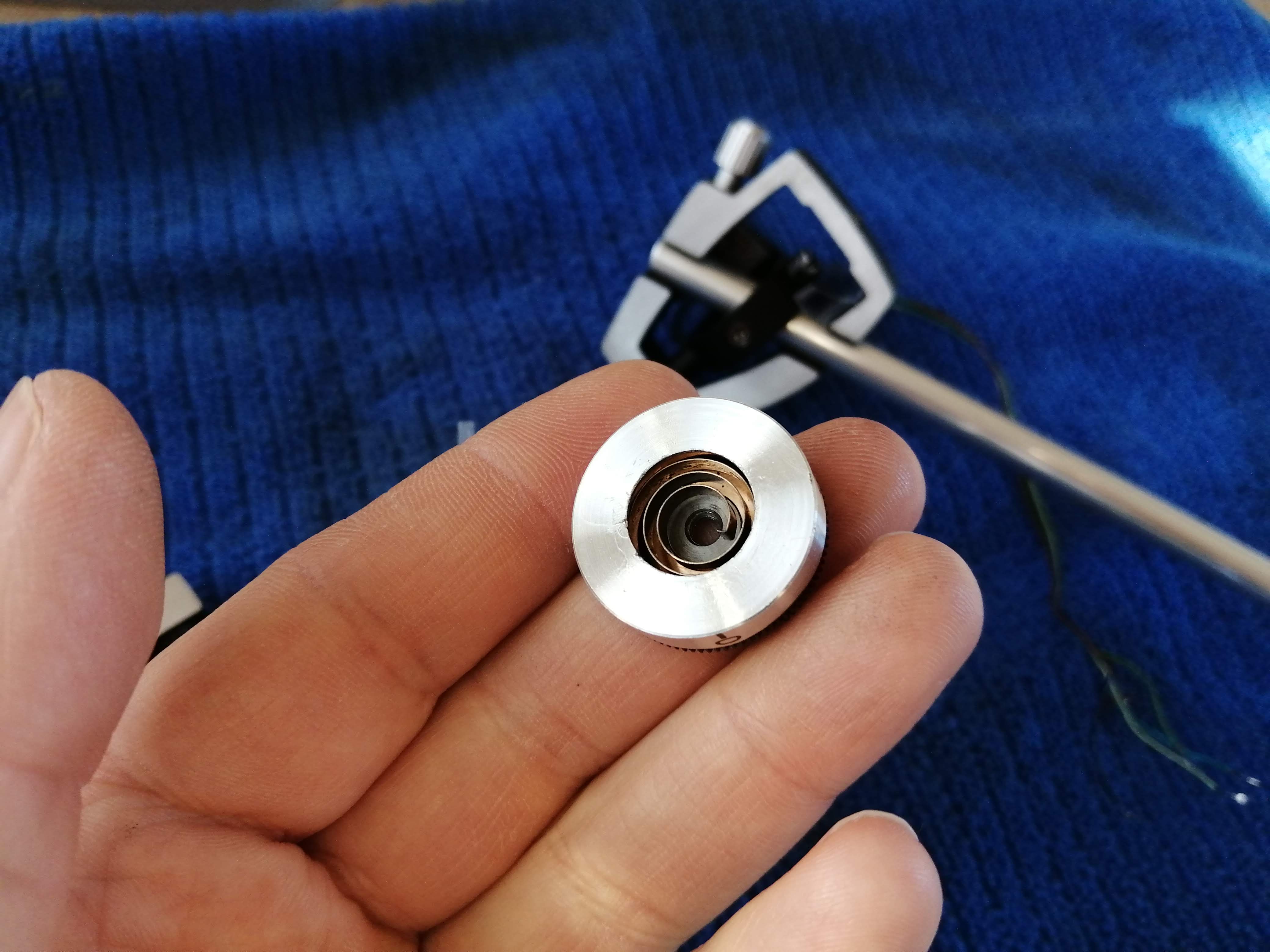 Również łożyska ramienia udało się naprawić i odblokować, chociaż szanse naprawy uważałem za dość niskie i w pierwszym momencie wydawało się, że potrzebny będzie dawca. Jedynie nacisk jest zawyżany w stosunku do pokazywanego na skali i trzeba to sobie uwzględnić przy ustawianiu. Cóż widocznie sprężynka dostała trochę po tyłku i trzeba by mechanizm wymienić całkowicie. Jakbym się z tego utrzymywał to bym musiał odmówić przyjęcia Duala w takim stanie.