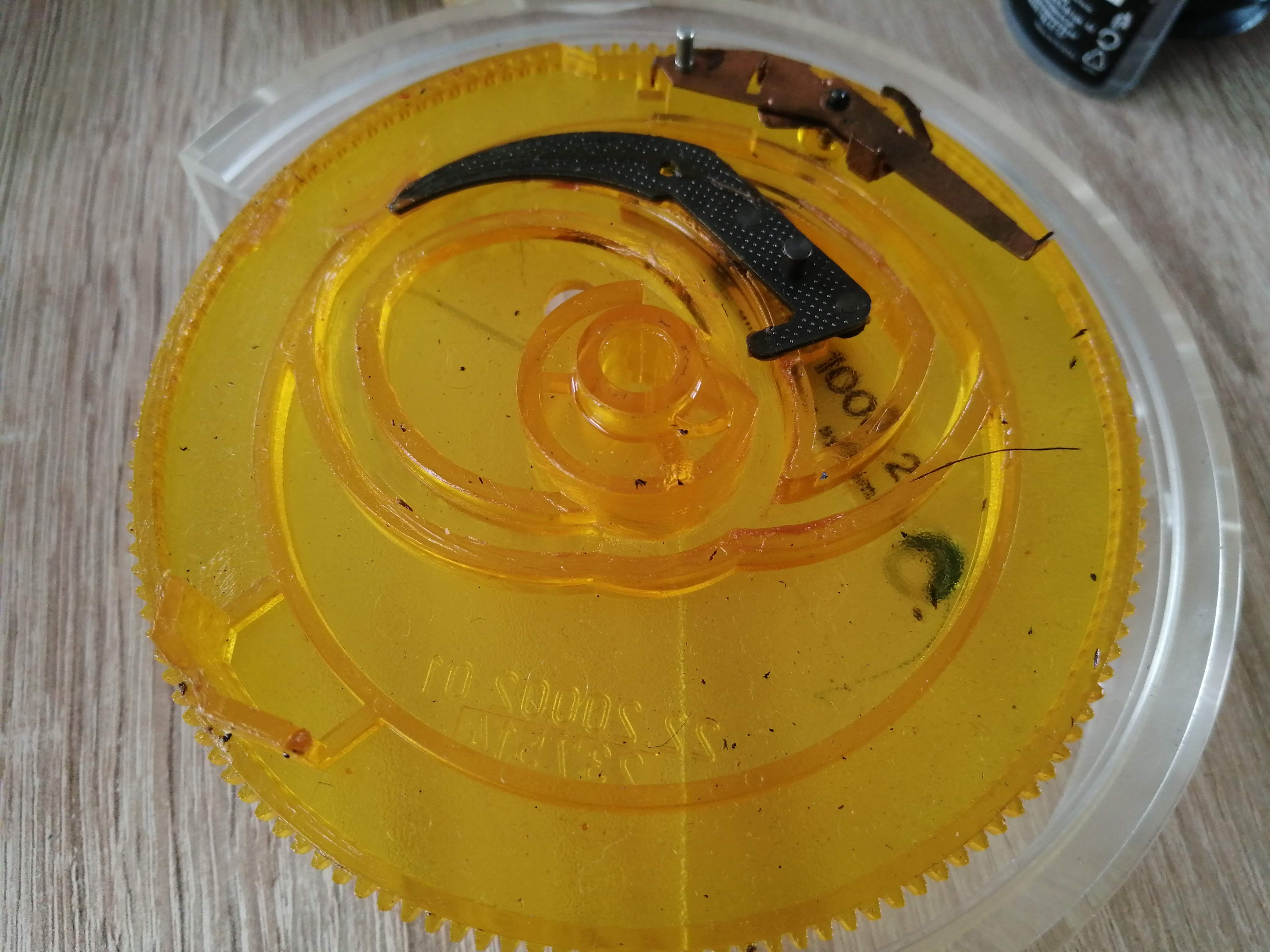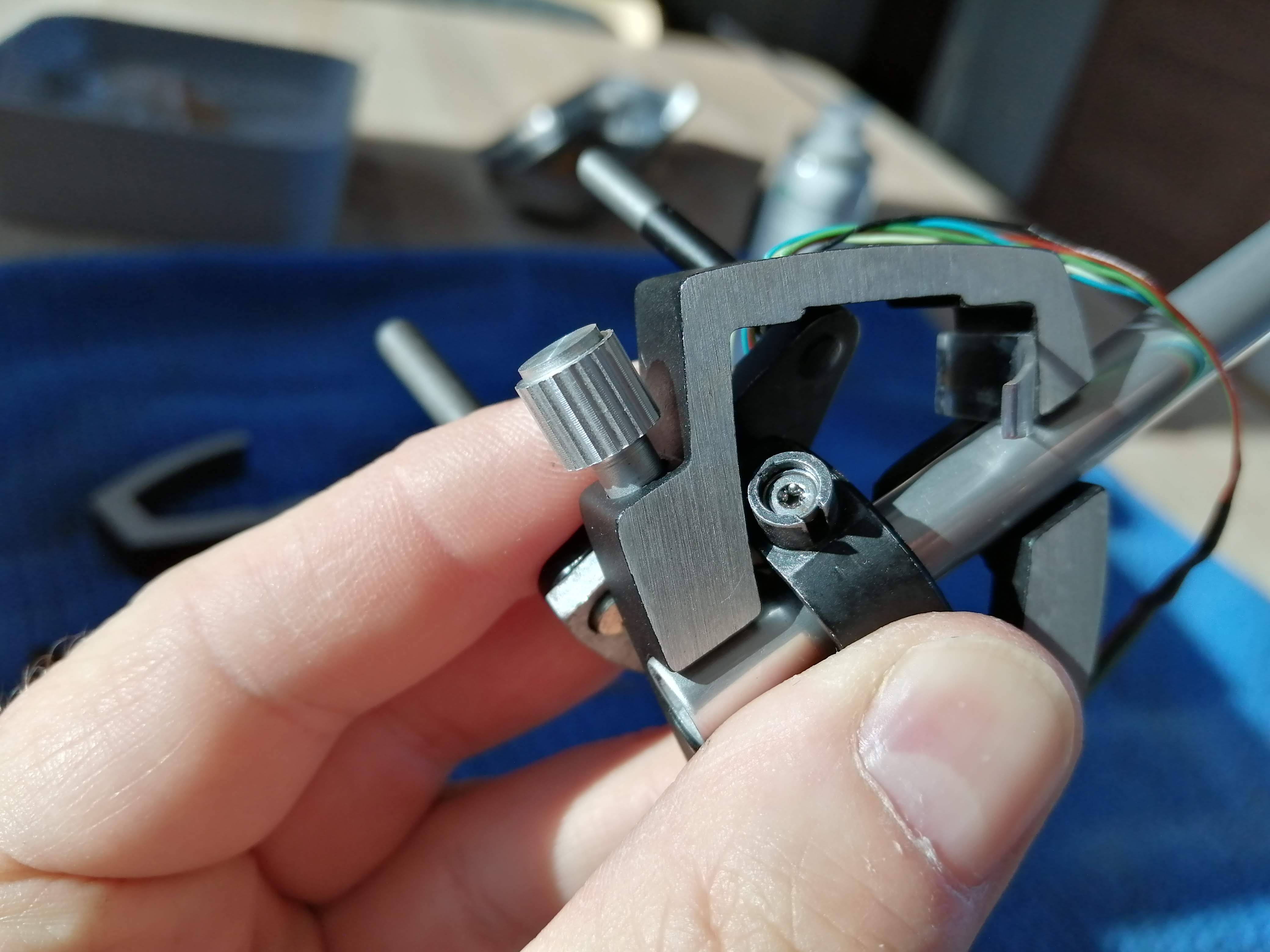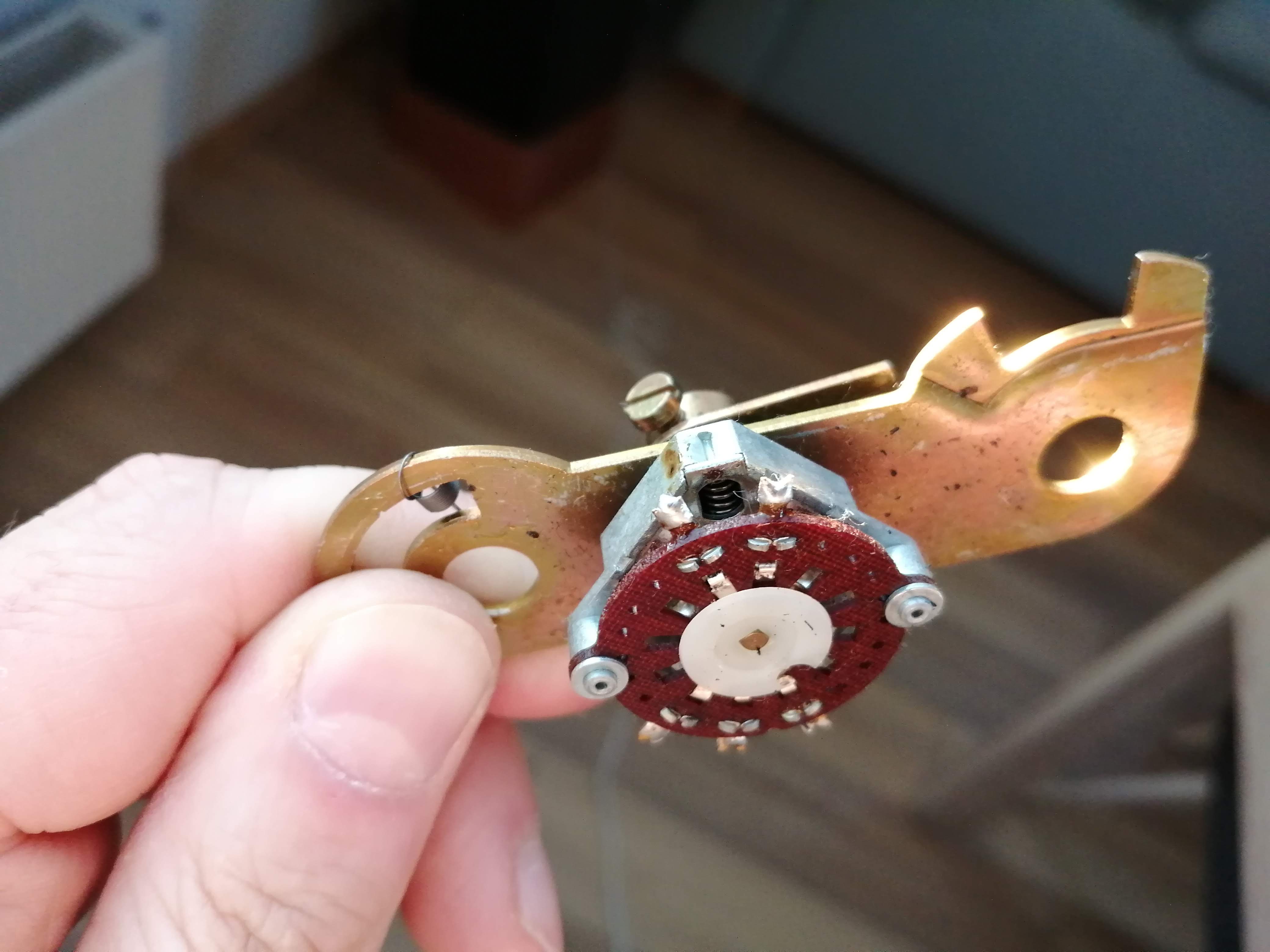 Również łożyska ramienia udało się naprawić i odblokować, chociaż szanse naprawy uważałem za dość niskie i w pierwszym momencie wydawało się, że potrzebny będzie dawca. Jedynie nacisk jest zawyżany w stosunku do pokazywanego na skali i trzeba to sobie uwzględnić przy ustawianiu. Cóż widocznie sprężynka dostała trochę po tyłku i trzeba by mechanizm wymienić całkowicie. Jakbym się z tego utrzymywał to bym musiał odmówić przyjęcia Duala w takim stanie.