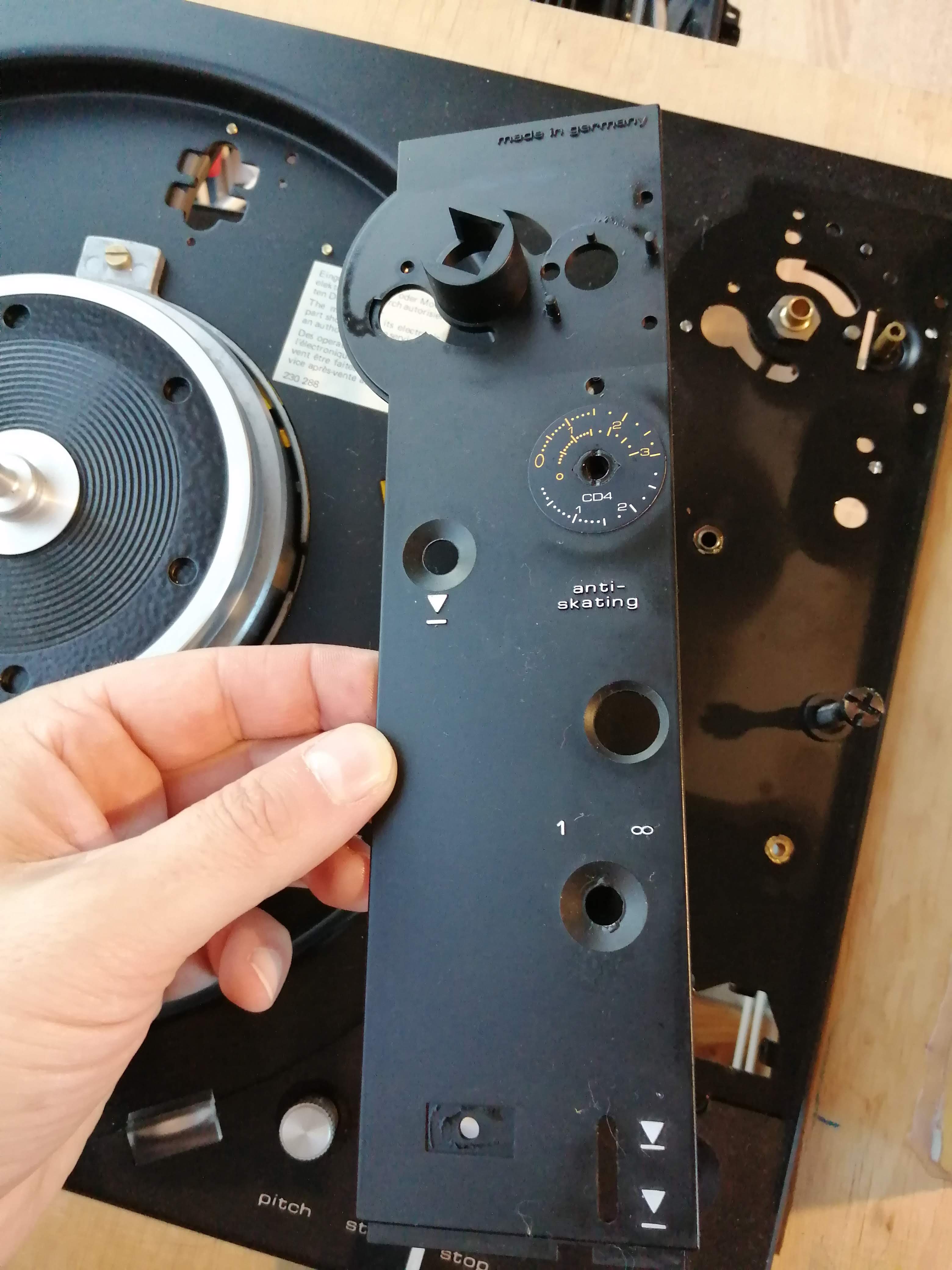 usterka tarczy antyskatingu naprawiona niefachowo, przez co zmieniła się charakterystyka siły antyskatingu