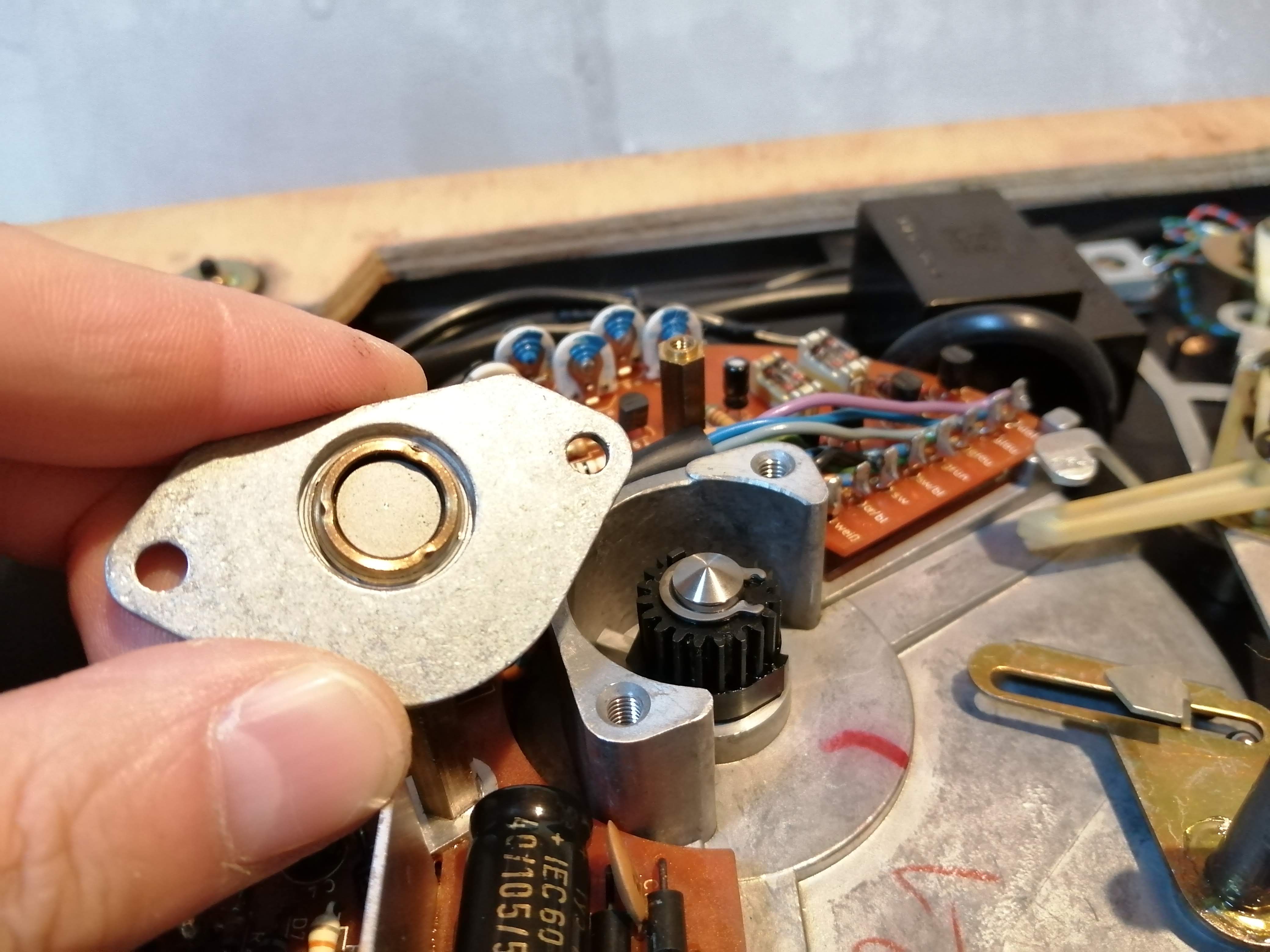 Pewnie to jakaś wczesna wersja łożyska musi być i jeszcze nie było drucika. Gdzieś czytałem, że ten problem różnicy potencjałów pomiędzy rotorem a chassis był dość częsty w USA i Kanadzie. W Europie nie był jakoś specjalnie rozpowszechniony. Było to zgłaszane w informacji serwisowej dot. Duala 701, którą widziałem. Zalecenie serwisowe było, aby wymienić smar w łożysku na grafitowy. Później żeby zredukować różnicę potencjałów wprowadzili drucik, niezależnie czy szedł Dual na rynek Ameryki Północnej czy do Europy.