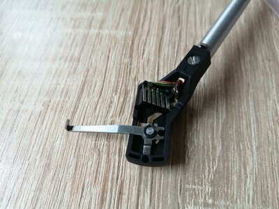 Przywróciłem do życia kolejnego Duala. Za niedługo wyląduje na forumowej giełdzie. To paskowy Dual 505-1 z początku lat '80. Jak do mnie dotarł to nie kręcił. Po podłączaniu wydobywał się tylko dymek i śmierdziało swądem. Co mnie wkurzało to to, że rurka ramienia miała jakieś ślady oksydacji powłoki. Mogłem to tak zostawić. Ale jednak nie wybrałem drogi na skróty, tylko rozebrałem ramię na części pierwsze, rurkę wyszlifowałem, wypolerowałem i zabezpieczyłem. Przy okazji wzmocniłem pękającą klatkę sprężyny nacisku - słaby punkt wielu Duali z tego okresu wyposażonych w ten mechanizm.