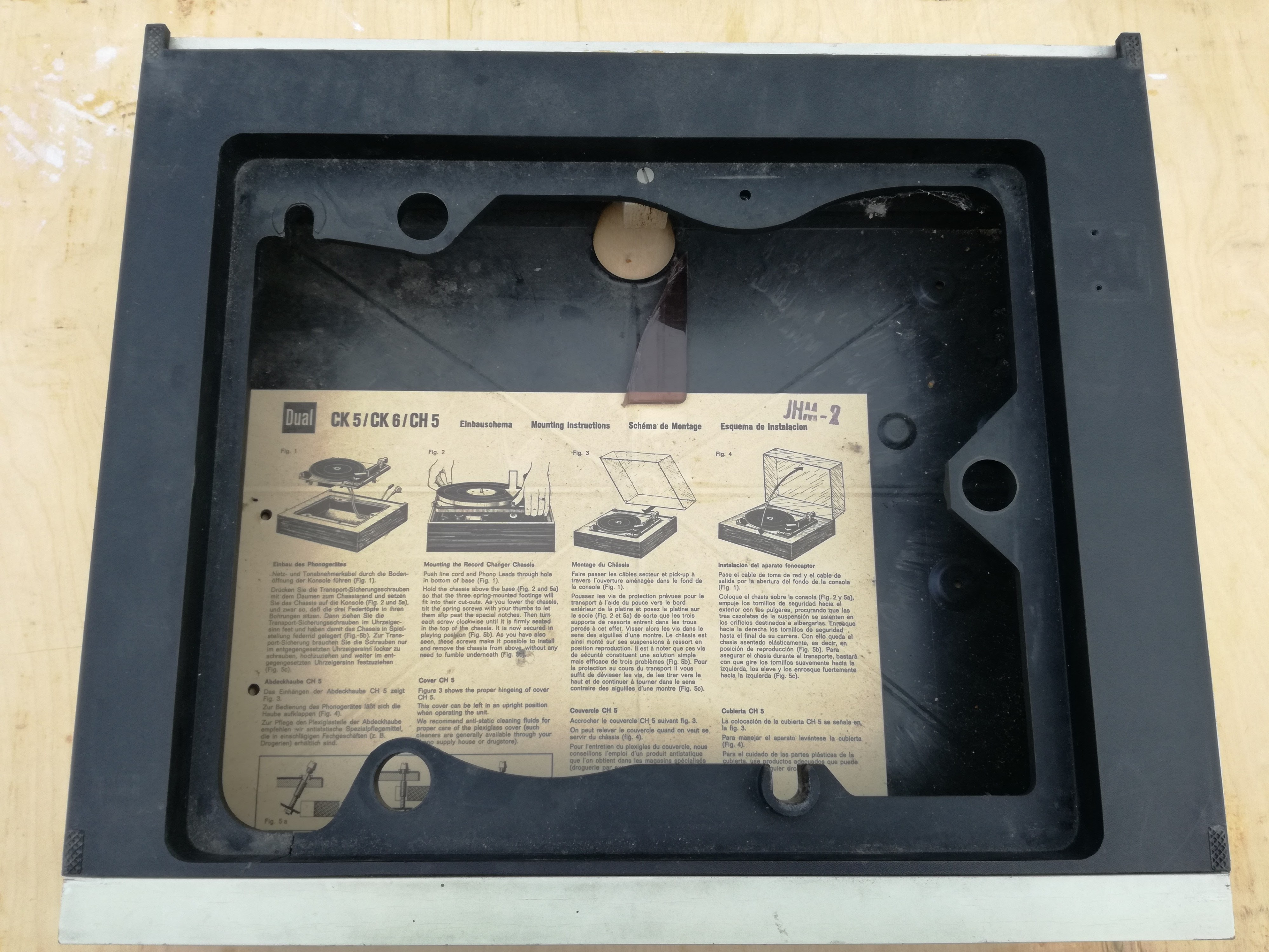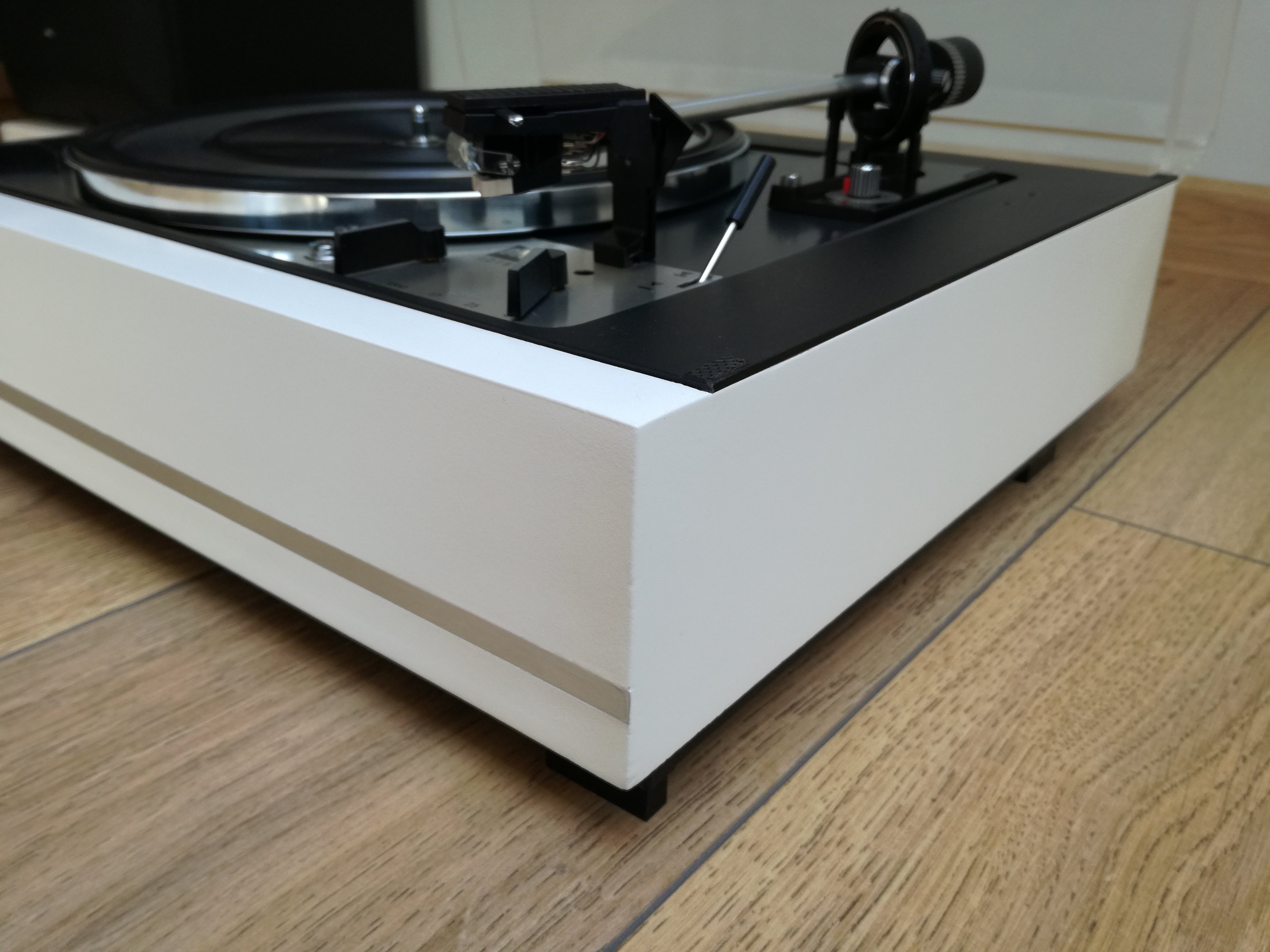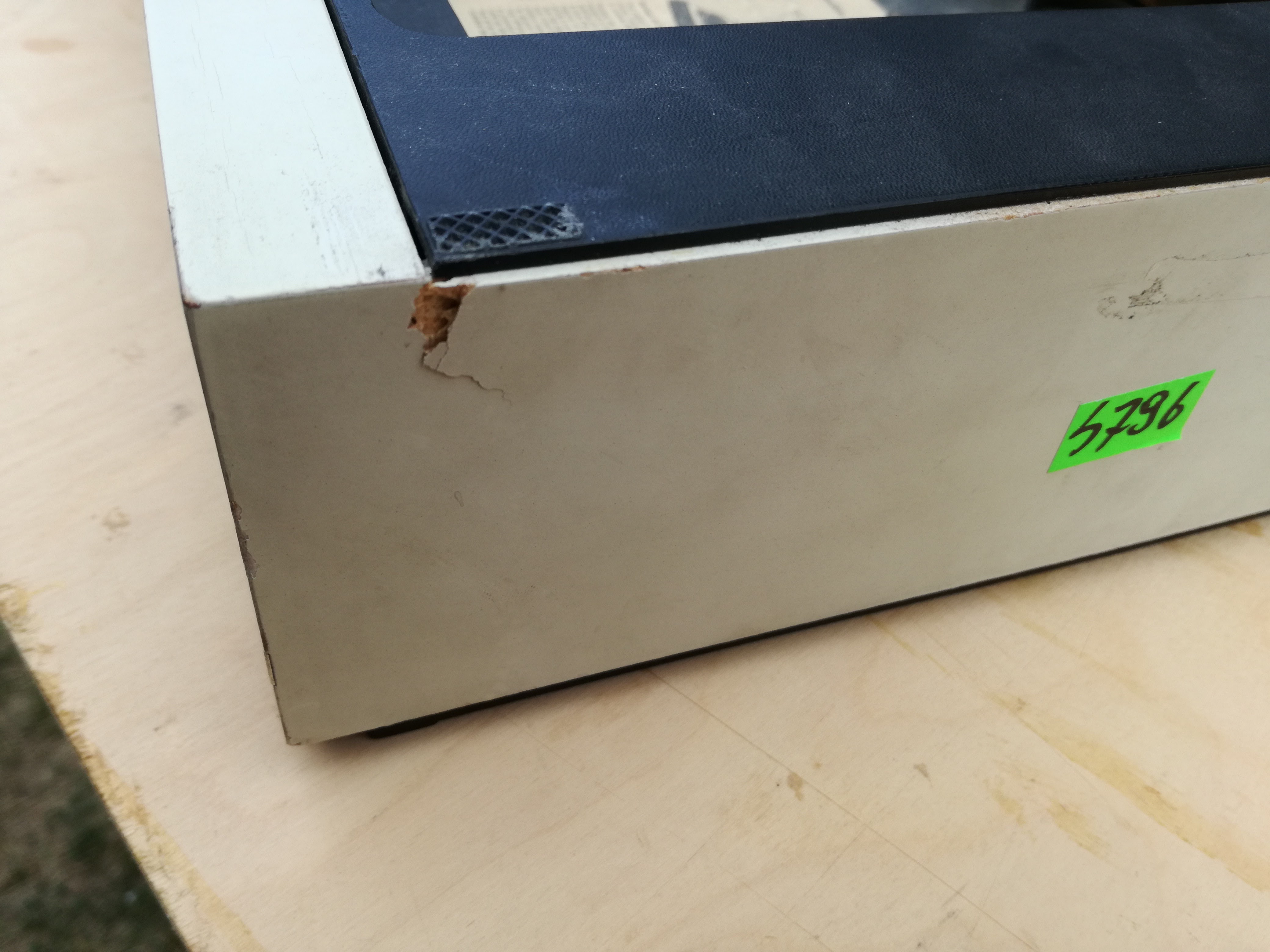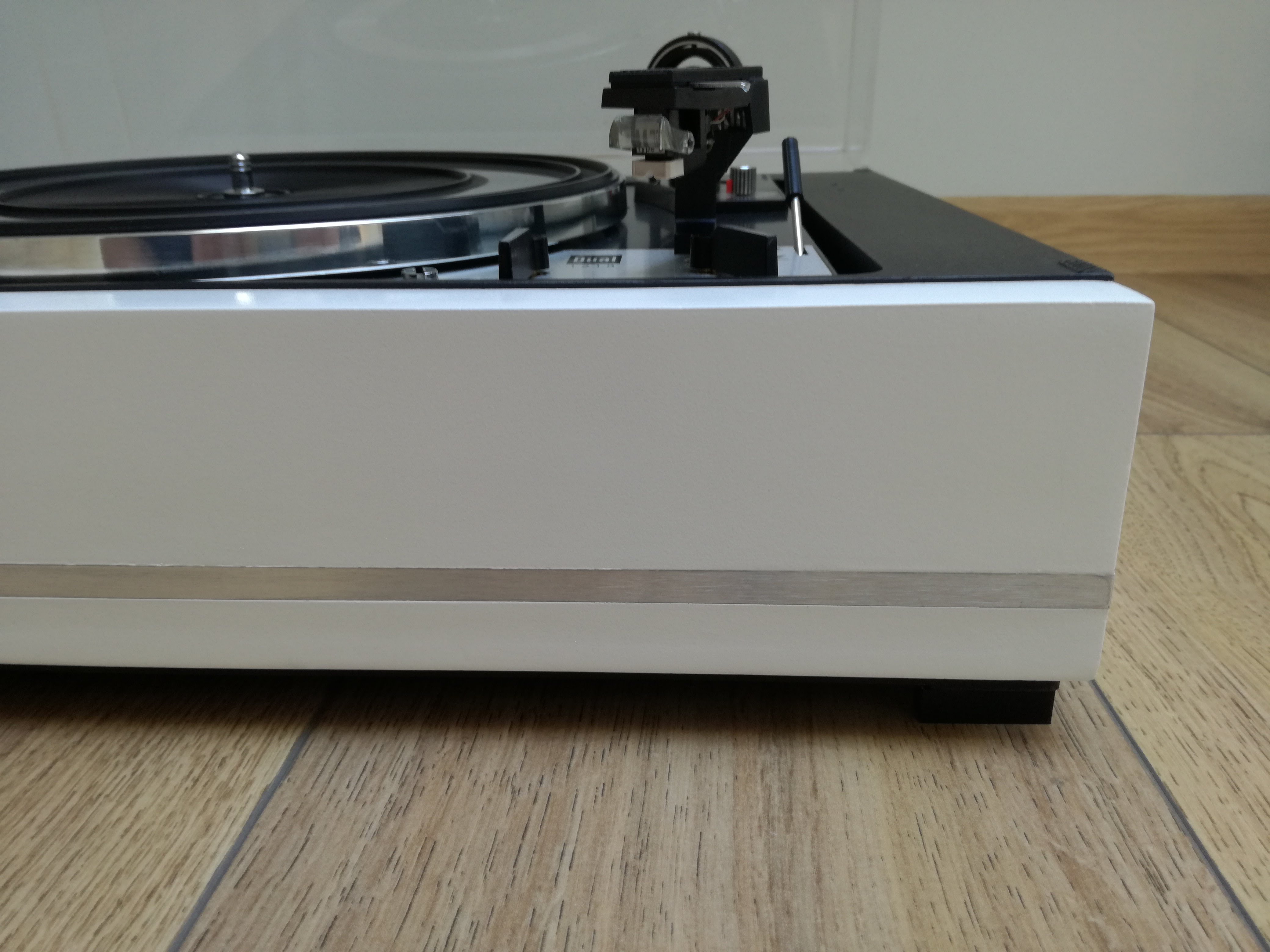 Trochę czasu minęło odkąd przytargałem do domu tego brudasa zaprezentowanego kilka postów wyżej (post #51). Gramofon strasznie zapuszczony. Stan wizualny średni. Stan techniczny jeszcze gorszy. Opinia sprzedawcy: nie działa. Bok plinty uszkodzony i wybrzuszony. Niewiele brakowało aby kawał tego boku o szerokości ok.7-8 cm, się po prostu oderwał od całości.