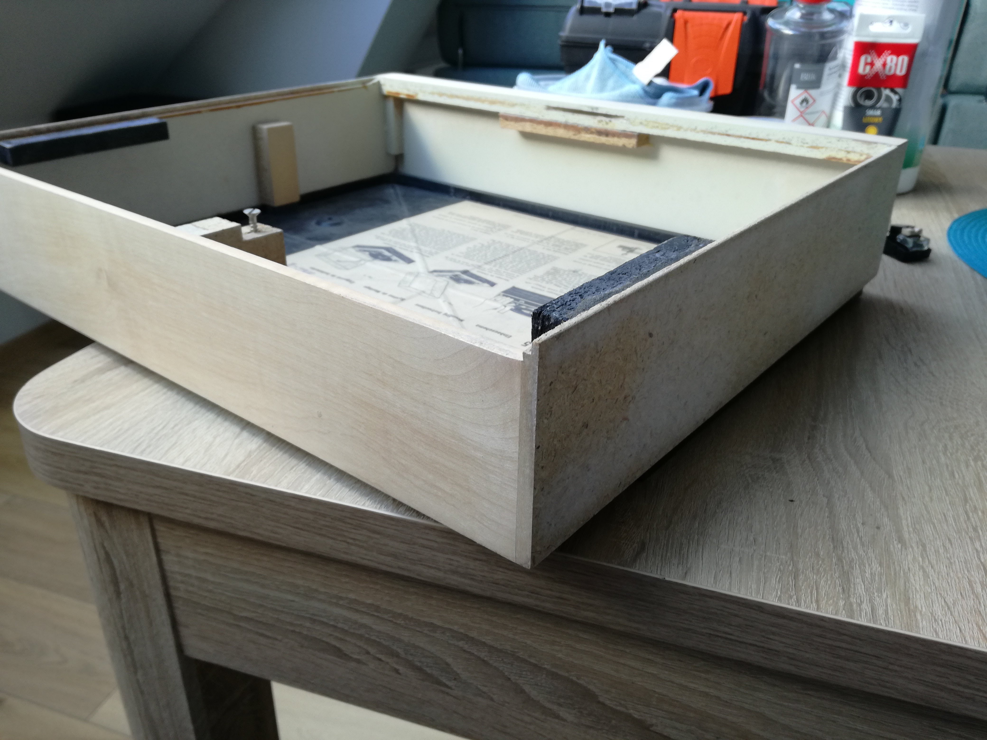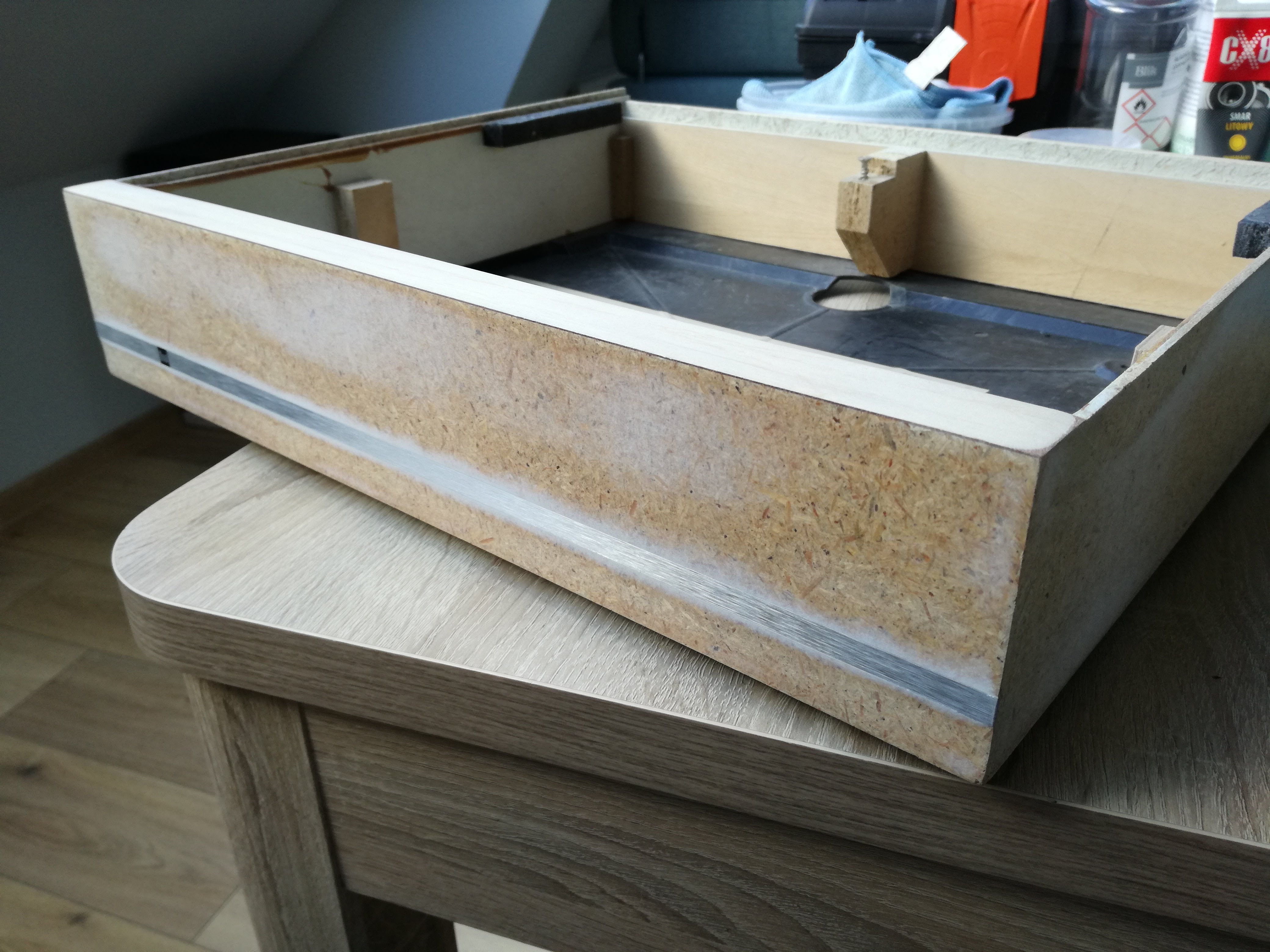 Stary lakier z plinty zdarłem aby pomalować całość od nowa. Bok naprawiony.
