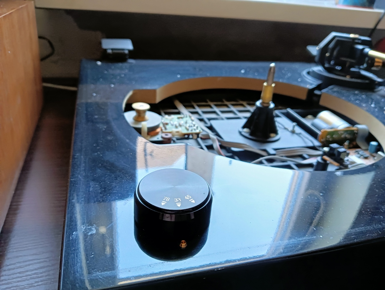 Dual ten modowany wizualnie w stylu "Audiophile Concept". Ale strony wizualnej nie będę omawiał. Skupię się tylko na technicznej. Gramofon miał problemy z szwankującą automatyką. Powędrował, więc do "specjalisty". Specjalista coś podłubał, ale zadanie go przerosło, więc oddał gramofon nienaprawiony. Albo bardziej popsuty
