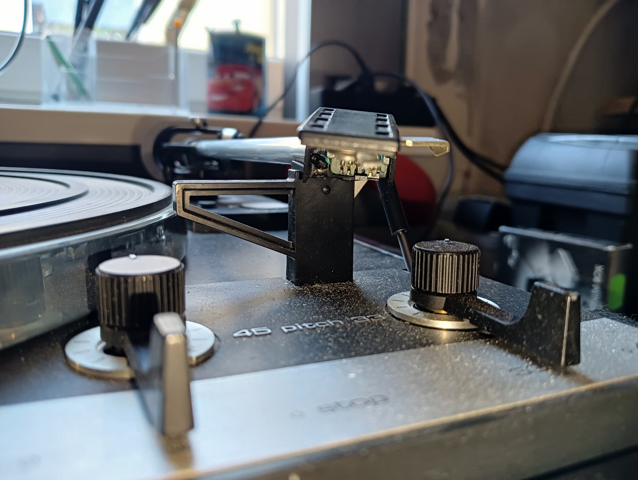 - uszkodzony headschell, który mocno pikuje w dół i ma skopany azymut do tego stopnia, że nie da się poprawnie z gramofonu korzystać