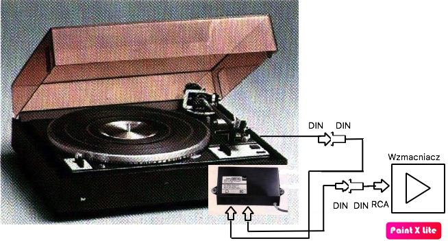 Pierwsze od góry złącze DIN/DIN jest zbędne. Lepiej bezpośrednio podpiąć kabel z gramofonu do przedwzmacniacza. Im mniej wtyczek i kabla po drodze tym lepiej.