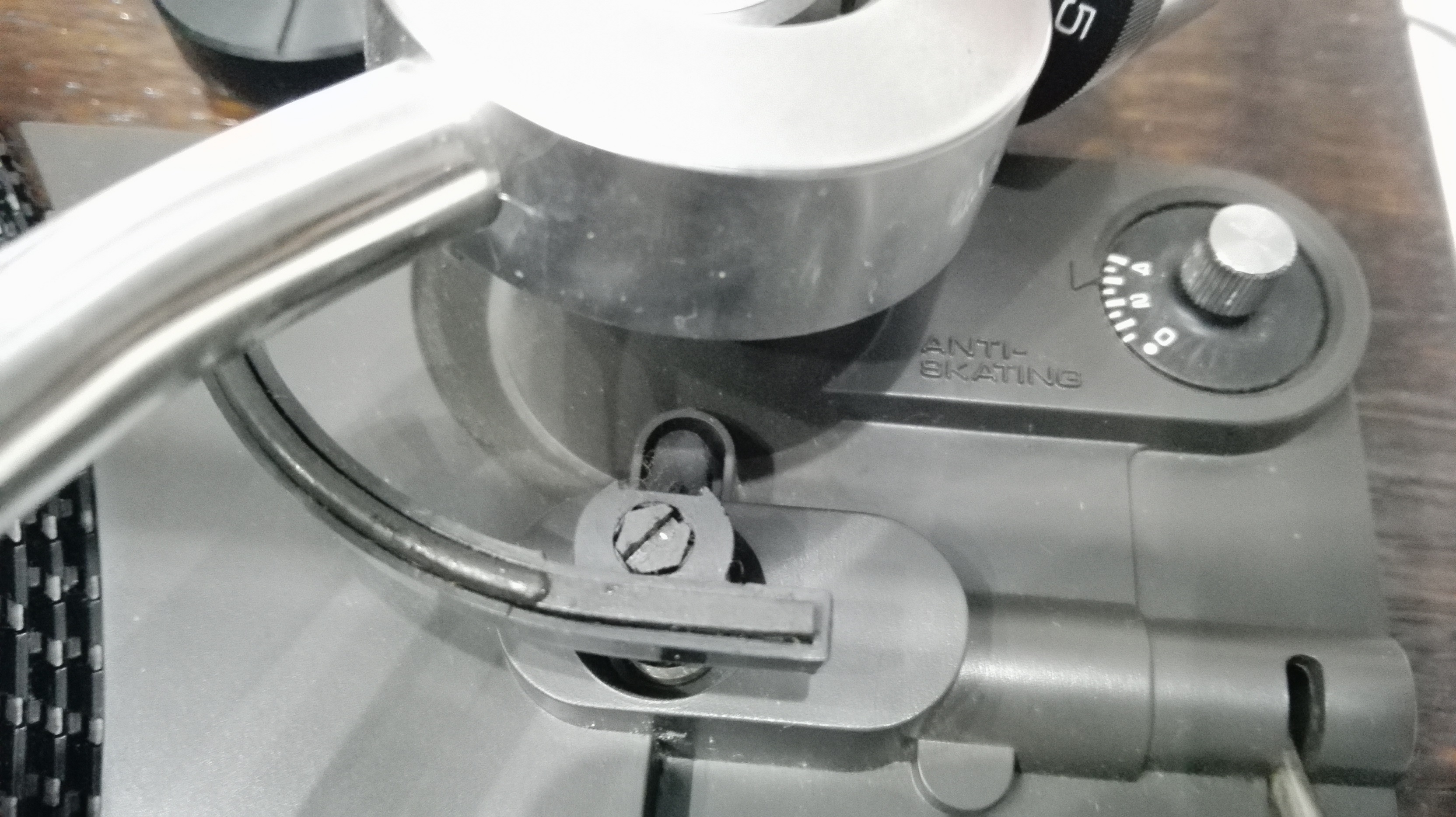 mój Tato ma gramofon Technics SL 23A. Bardzo fajny choć już mający swoje lata gramofon. Ostatnio były kłopoty z regulacją obrotów, rozebrałem go, wystarczyło wyczyścić preparatem Kontakt przełącznik obrotów oraz regulatory obrotów 33 i 45. Niestety parę tygodni później, nagle płyty zaczęły przeskakiwać i zginął jeden kanał. Przyjrzałem się igle i stwierdziłem, że jest zużyta. Wymieniłem igłę a przy okazji wkładkę na AT 91 - akurat miałem nową, wyważyłem nacisk mierzony wagą 2 g i ustawiłem kąt według szablonu dostarczonego z wkładką. I nagle zaczęły się problemy. Gramofon po podniesieniu ramienia uruchamiał silnik - po czym silnik natychmiast się zatrzymywał ale lampka stroboskopu nie gasła. Jeśli przesunąłem ramię do końca płyty znów talerz na sekundę ożywał i znów się zatrzymywał.