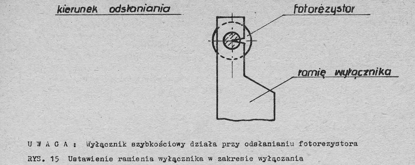 Wynika z niej że stop załącza się przy odsłonie fotorezystora, a nie jego zasłonięciu, więc cała sztuka sprowadza się do odpowiedniej regulacji przesłony która przy odtwarzaniu płyty powoli zasłania fotorezstor, a na jej końcu, na tej krańcowej ścieżce następuje szybka odsłona i załączenie stop'u.