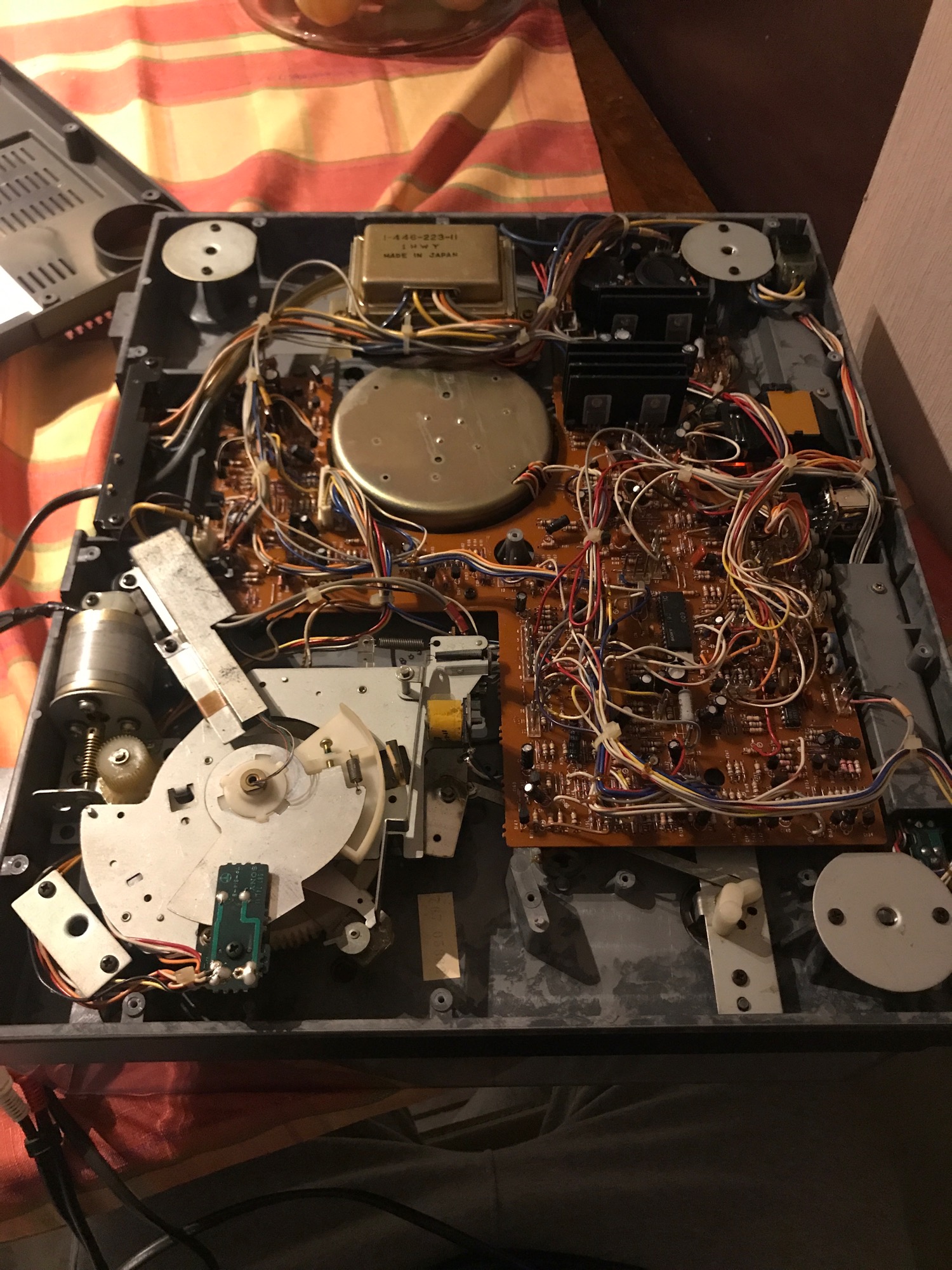Gramofon kupiony jako generalnie sprawny, pierwsze odpalenie i oczywiście lift ani drgnie, winny temu oczywiście zastany smar na sprężynce od windy.