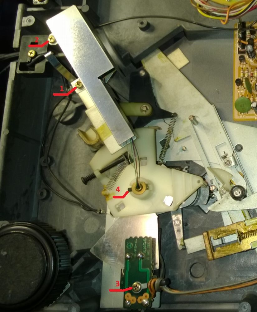 Ostrożnie aby nie urwać kabelków ściągam z osi ramienia spowalniacz windy ...