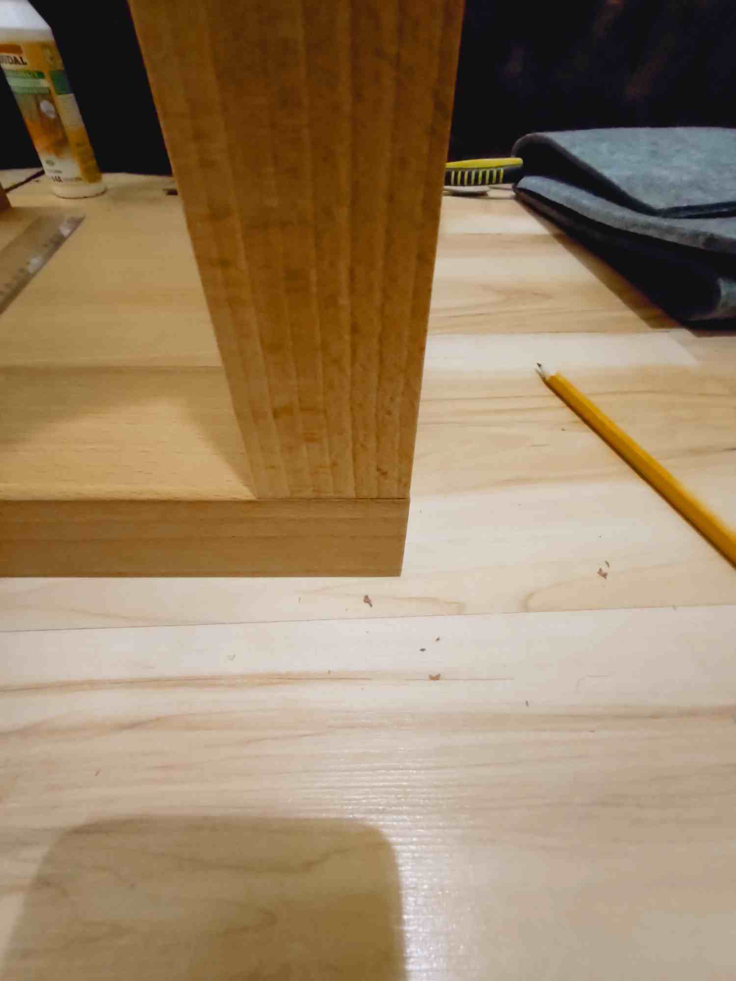 Zastosowanie kolkowi kleju na ostatniej prostej nie wyszlo: albo kolki za krótkie (3cm) albo klej za slaby, albo i jedno i drugie. Elementy pionowe po zastosowaniu kleju i kołków niestety sie obracały w 2 przypadkach na 4. Poza tym nie bylo to jakos super spasowane. Być moze lepszy efekt dalyby 2 kolki po przekatnej, wtedy by nie bylo mozliwosci obrotu. No ale ciezko byloby to w warunkach domowych tak nawiercic zeby dobrze i rowno spasować elementy. Finalnie i tak nawiercilem otwory i skręciłem konfirmatami. Jestem zadowolony w sumie z wykonania i końcowego efektu i z tego ze ostatecznie dociagnalem do końca a nie wypieprzylem przez okno