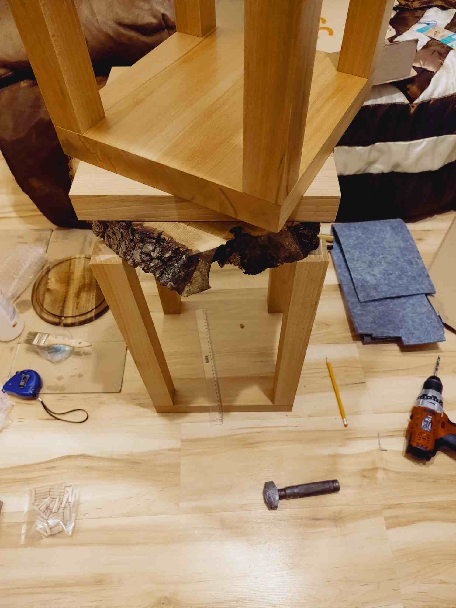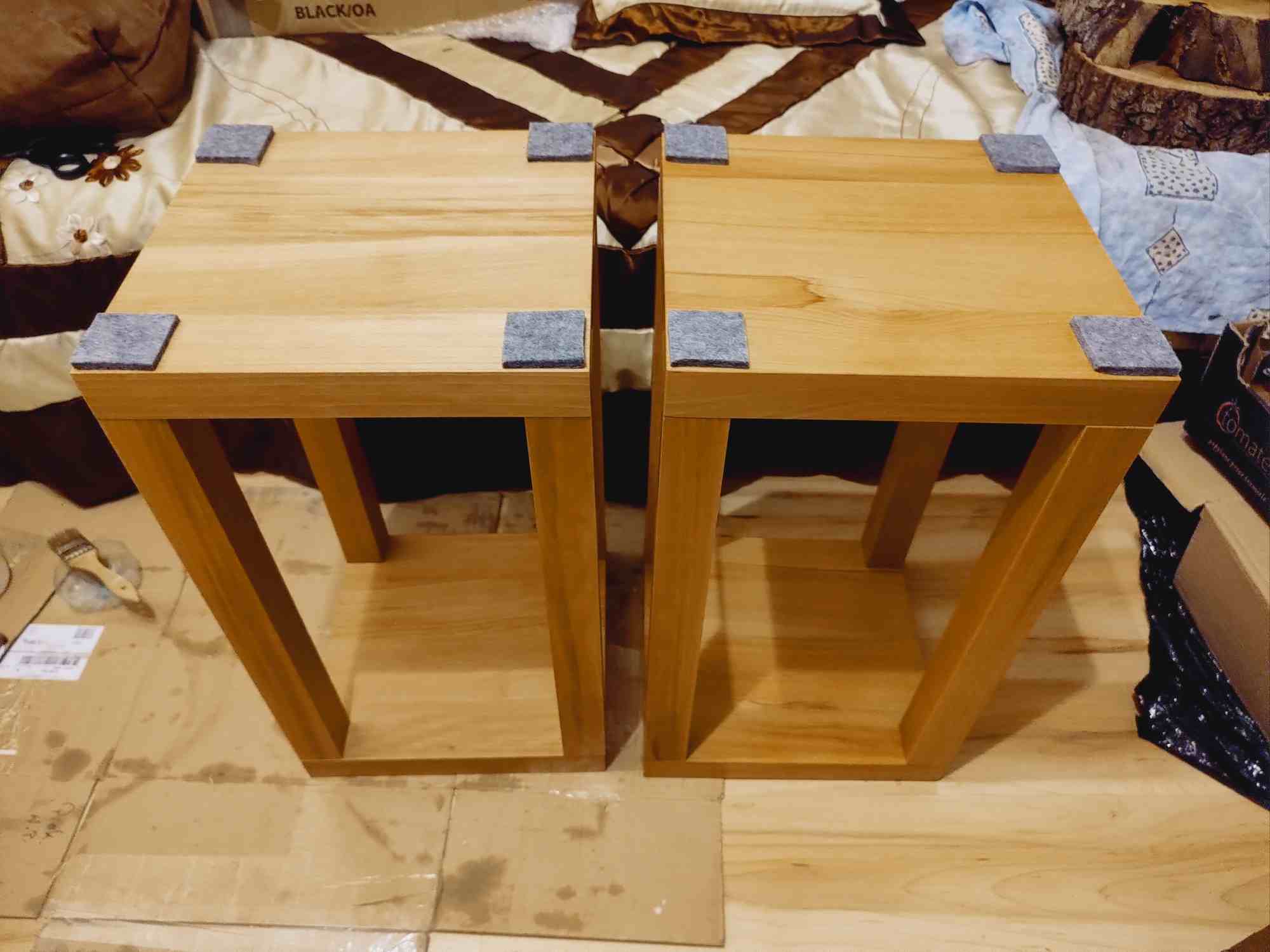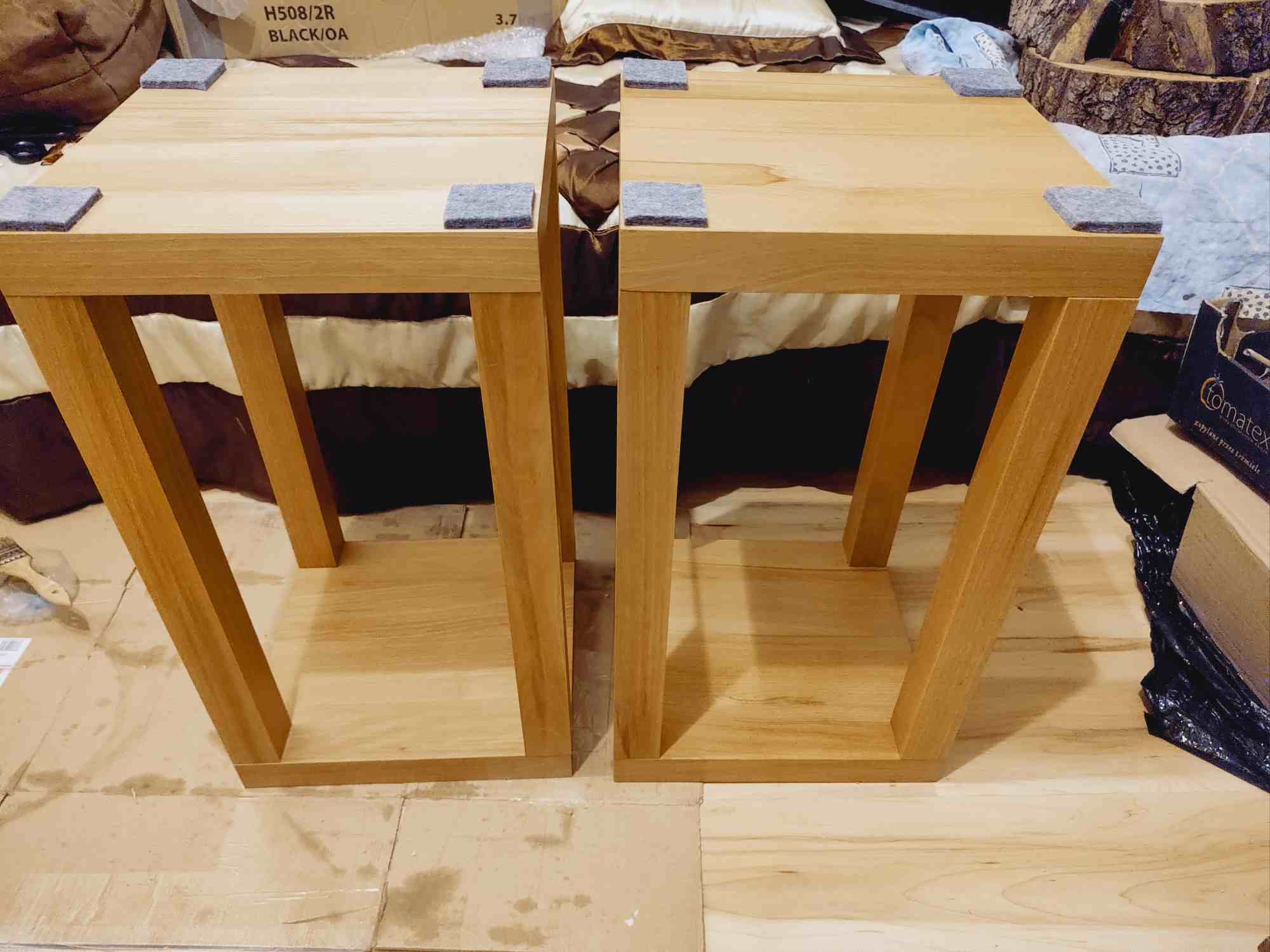 . Dokleilem jeszcze filc na gore, co by kolumny nie staly na gołym drewnie. Zastanawiam tylko sie czy jeszcze pod spod nie podkleic, od strony podłogi. A tak to ostatecznie wygląda: