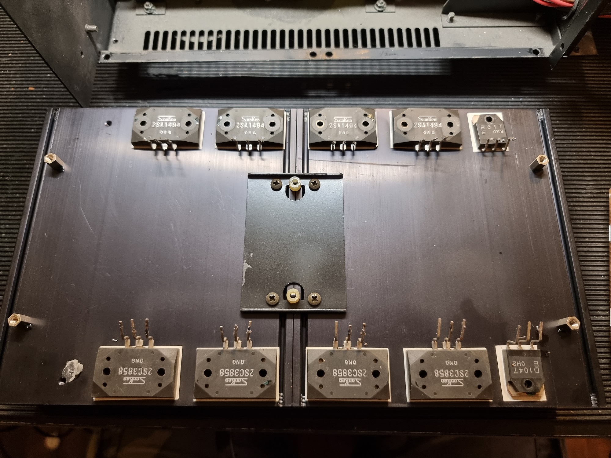 Kolejnym etapem były kondensatory na końcówkach: a żeby dostać się do nich i tak trzeba było rozkręcić cały wzmacniacz