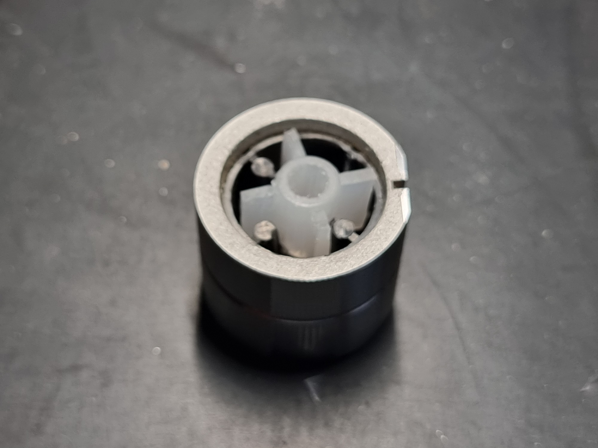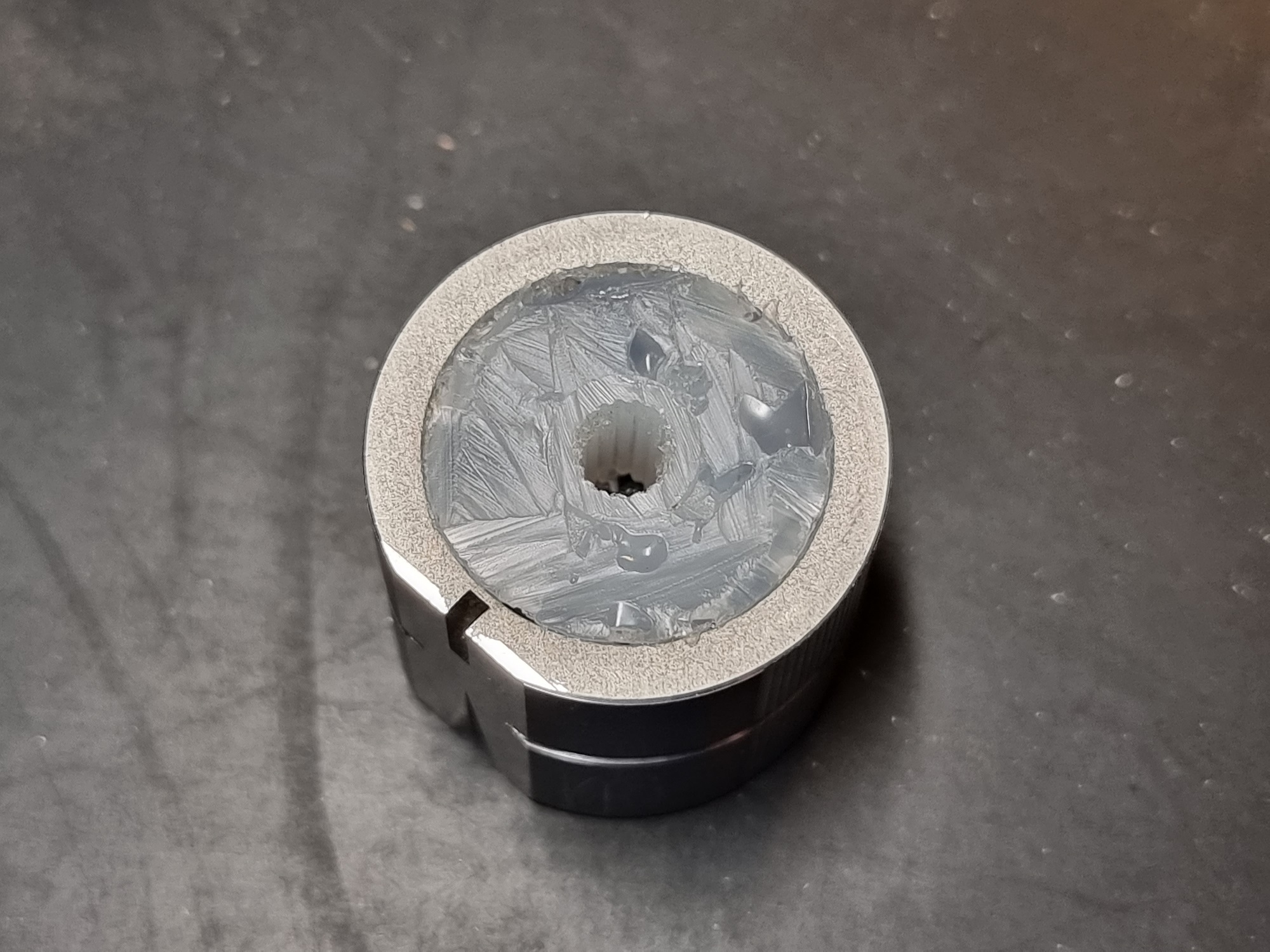 zakupiłem więc gałkę na tą samą średnicę trzpienia i obrałem z aluminiowej warstwy zewnętrznej
