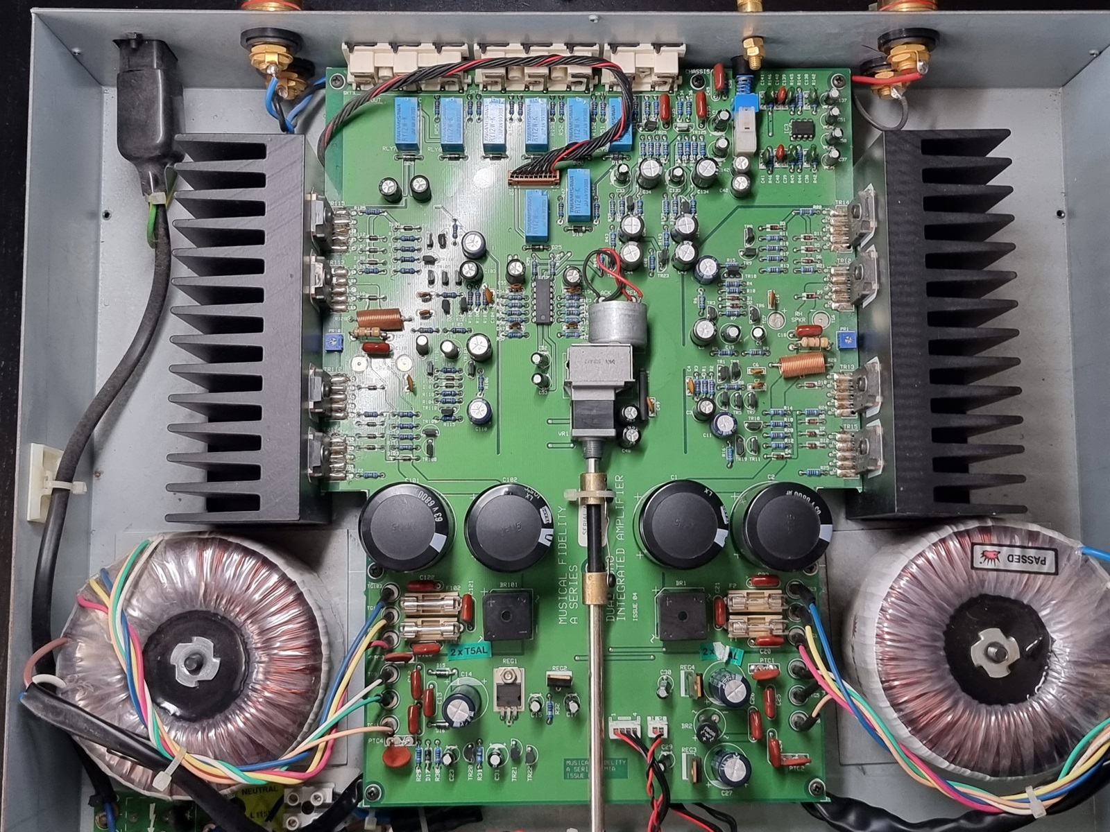 Musical Fidelity A300 Dual Mono Integrated Amplifier... tak na obudowie było bo sam bym nie zapamiętał. To znaczy, że jest to inegra w dualu i ma 300W.. ale dzielone na 2 kanały co daje po 150W na kanał przy 8ohm. Sonicznie czegoś brak na górze i dół nie pracowal. Otworzyłem i przed oczami nowoczesna konstrukcja, taka jakaś delikatniusia. bo do bardziej hardmotherfu.... konstrukcji przyzwyczajony jestem.