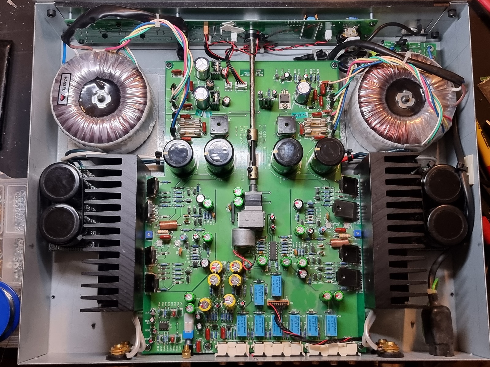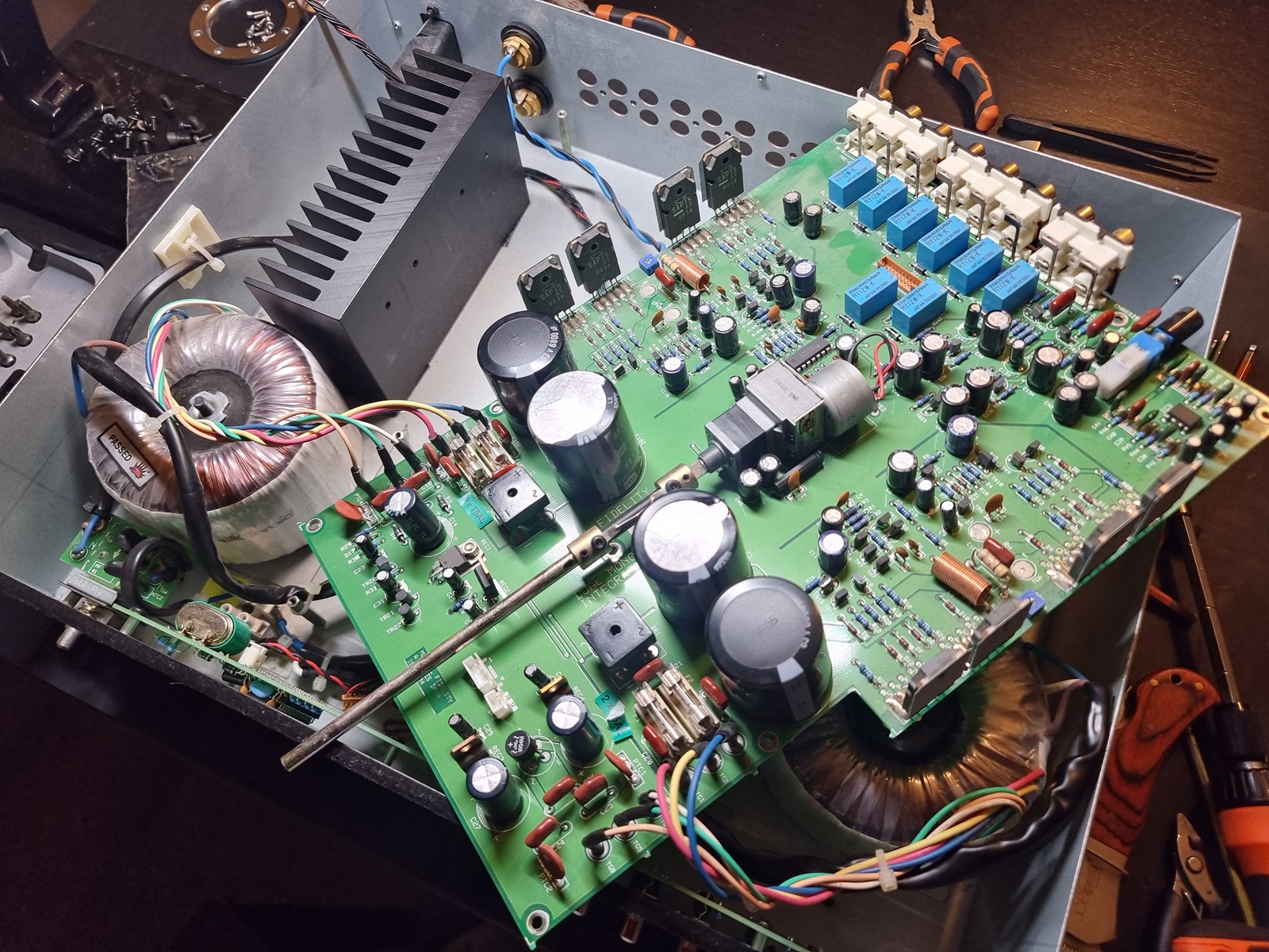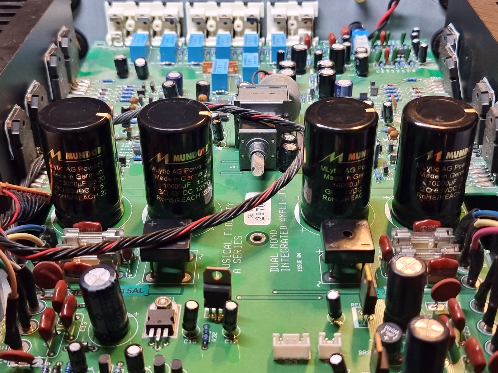 a że chciałem mu zrobić dobrze to dodatkowo weszły do środka jeszcze po 2 sztuki 10000uF na kanał