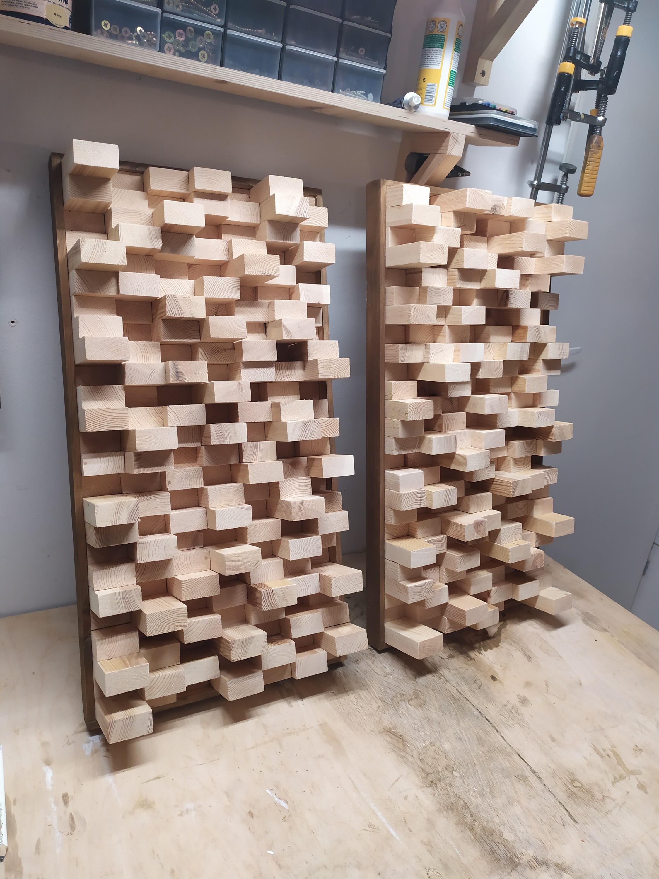 Myślę że zostaną surowe, chociaż z drugiej strony można zapodać natryskowo jakiś lakier. Kompresor w garażu jest... Sam nie wiem, myślałem o tym. Zapewne łatwiej będzie je odkurzać. Ale zauważyłem że surowe drewno dużo, ale to bardzo dużo mniej przyciąga kurz. Na tą chwilę mam dość, może za jakiś czas.