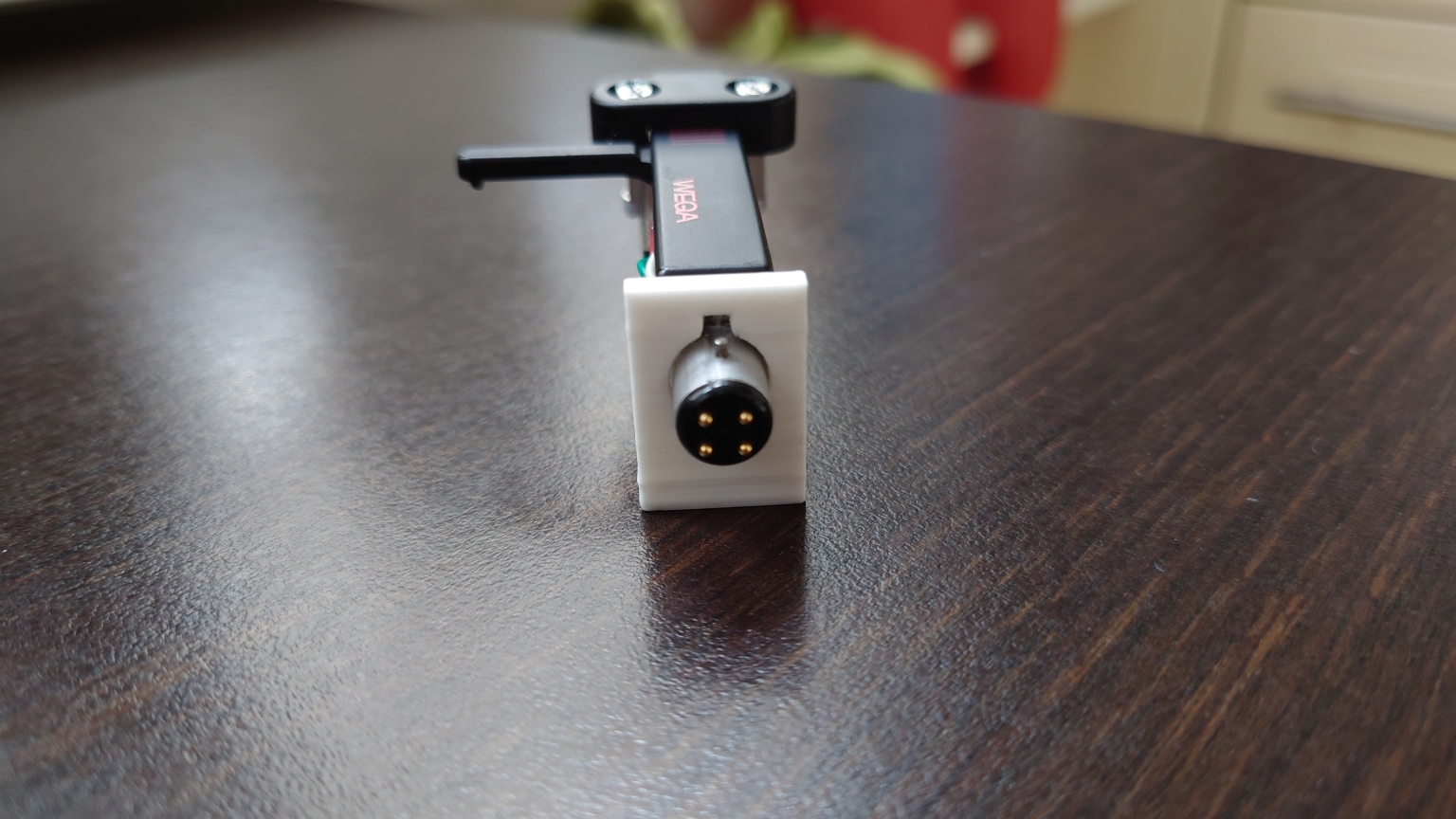 widać że headshell totalnie luźno siedzi , otwór jest o ponad 1mm na moje oko za duży. Przy czymś takim totalnie nie ma sensu ustawiać overhangu na odległość od tipu igły do kołnierza headshella. Wszystko tu luzem lata sobie jak chce.