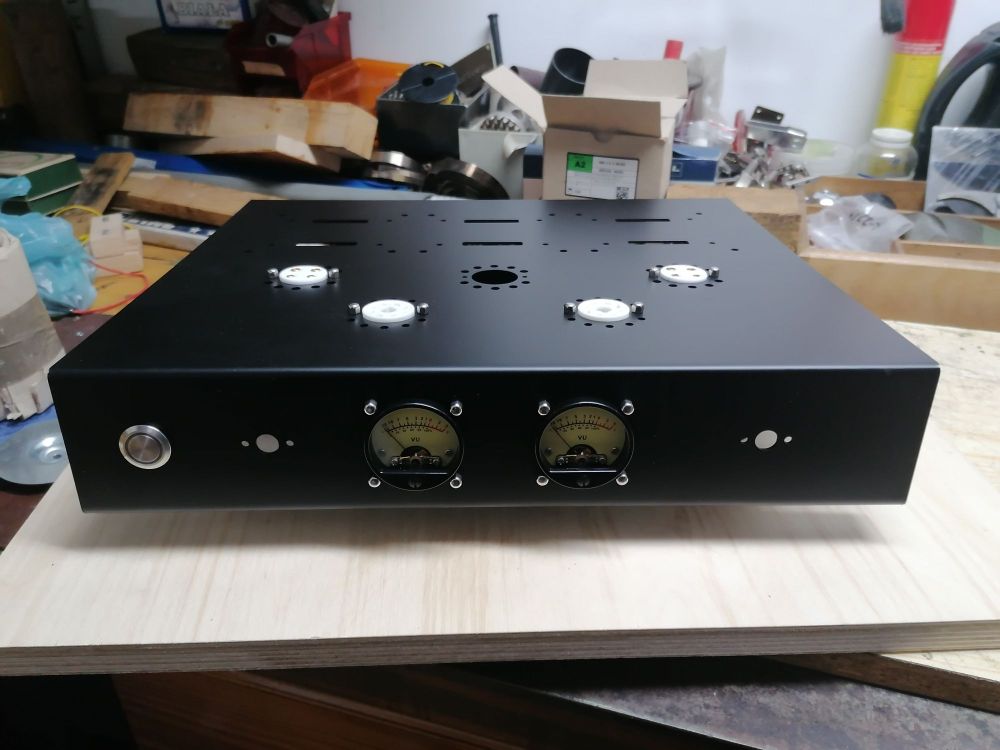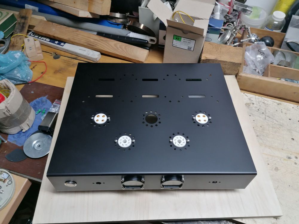 Buda. Będzie klasyczna dwie pentody z przodu za nimi rząd 2a3 z 5u4g w środku albo coś z szerokim biodrem np 274B i czarna trójka kostek na końcu... Front od lewej power, gała selektor, 2x45mm vu i gała vol.