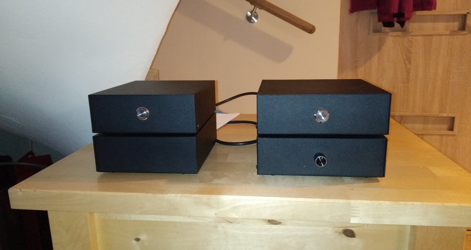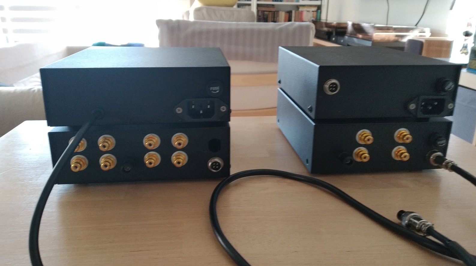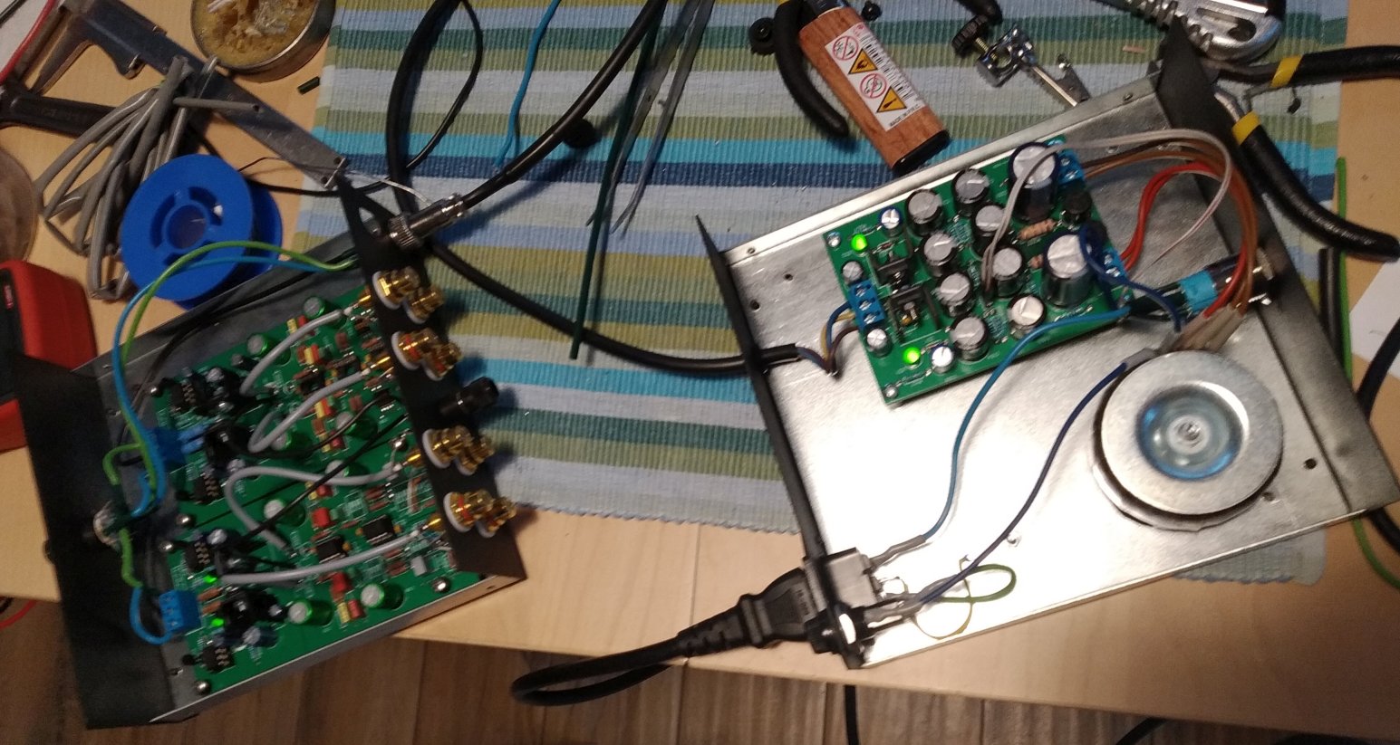 Dwa zestawy gotowe: ten z lewej MM ale z możliwością podpięcia MC (gain 60dB i obciążenie 100 Om) dla PatLove, drugi z dwoma niezależnymi sekcjami MM i MC dla Latro