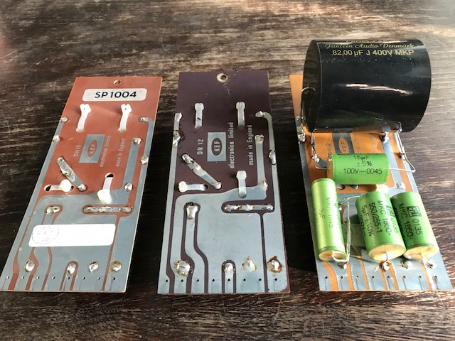 Wszystkie w zwrotnicy po lewej to elektrolity. W środkowej 2 Mundorfy schowane pod zielonymi rezystorami.