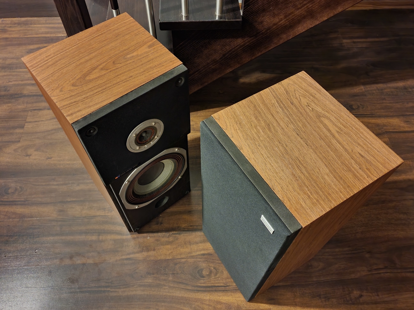 Żeby nie trzeba było szukać parę stron wcześniej, głośniki zanim się nimi "zaopiekowałem" były pokryte okleiną drewnopodobną z PCV i wyglądały tak: