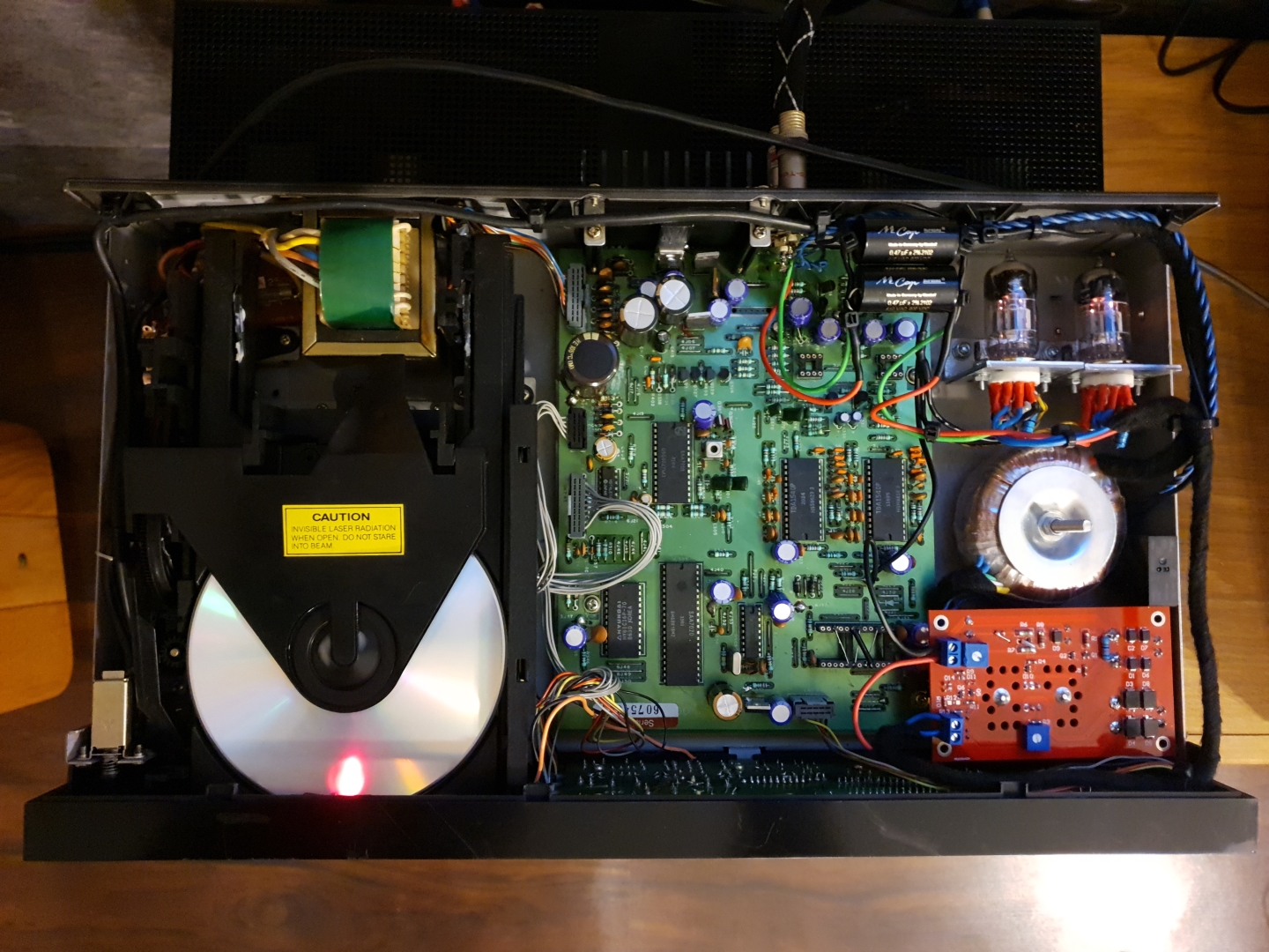 Skończyłem Philips'a CD820. Naprawdę dobrze zrobiony w środku, choć "rama" przestrzenna w obudowie nie ułatwia prac.