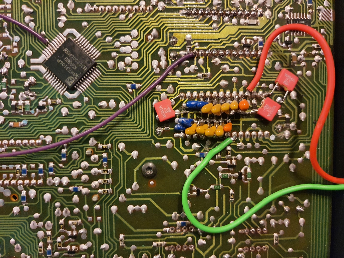 i zmiany od spodu PCB, widać tantale, WIMY i kradzież sygnału