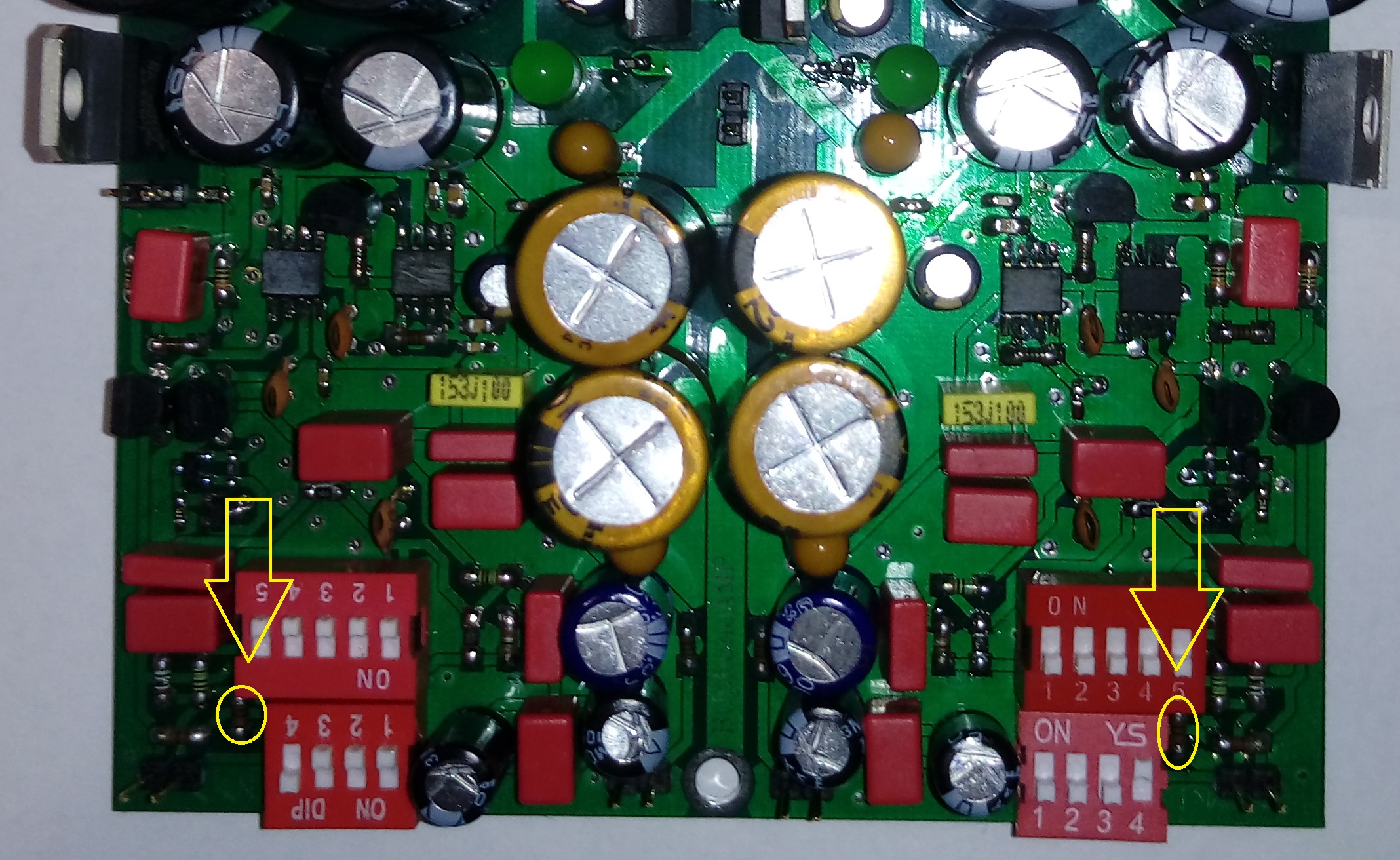 Należy wymienić te 2 rezystory mmelf oznaczone na zdjęciu na kondensator 150pF. Najłatwiej wymienić na kondensator SMD w obudowie 1206 z dielektrykami C0G / NP0. Nie lutować X5R, X7R, Y5V, Z5U bo to są słabej jakości kondensatory. Można także wlutować czerwoną WIME o rastrze 2.5mm , no ale wiadomo jest trudniej, no i może zbierać śmieci bo będzie odstawać od płytki, dlatego taka WIMA musi być jak najbardziej odsunięta od złącza. Ja osobiście lutowałbym SMD C0G 1206