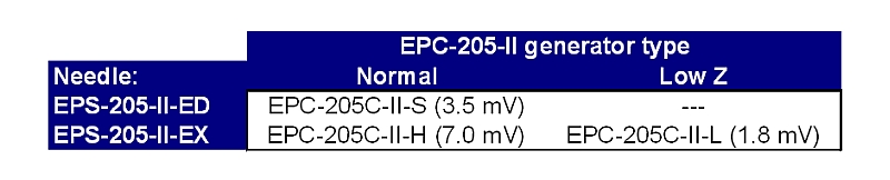 Pokażę to na przykładzie tabelki dla dwóch typów generatorów i dwóch rodzajów igieł pod Technics EPC-205CII: