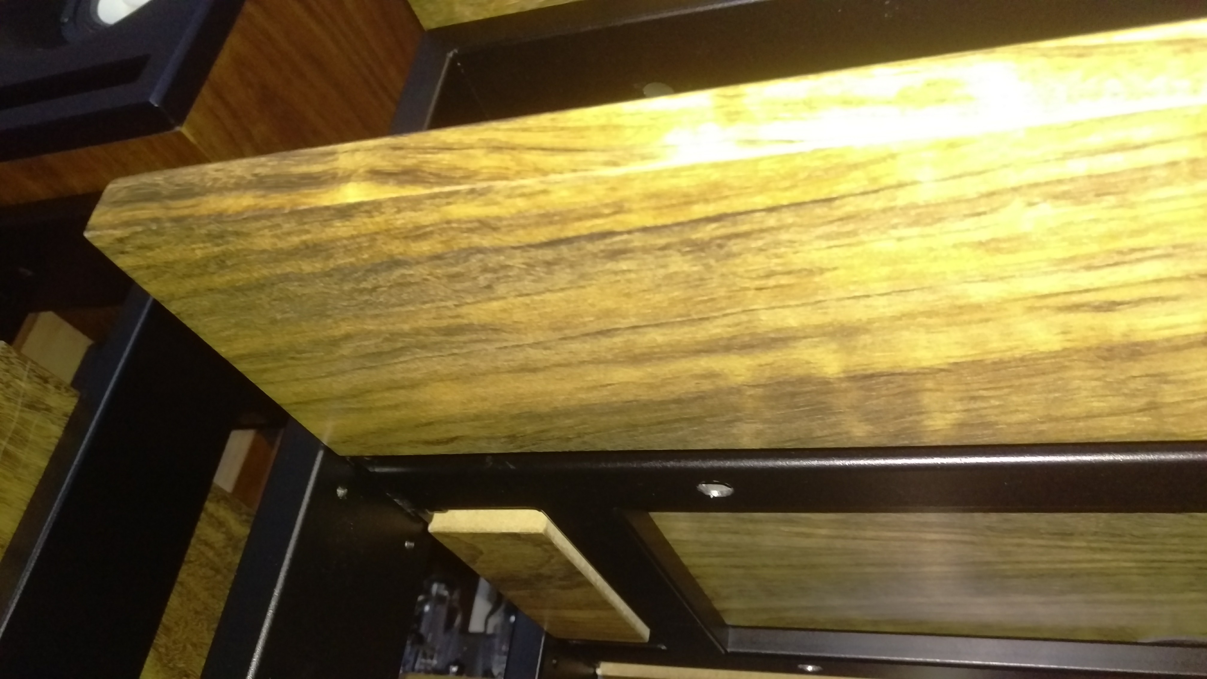 Hmmm ... ukośne ścięcia półek ... no i ta dolna półka ... tak pięknie dół jak w stojakach już nie wygląda ... ale miejsce dla jednego więcej ciężkiego kloca się pojawiło ... kompromis ... 8-)