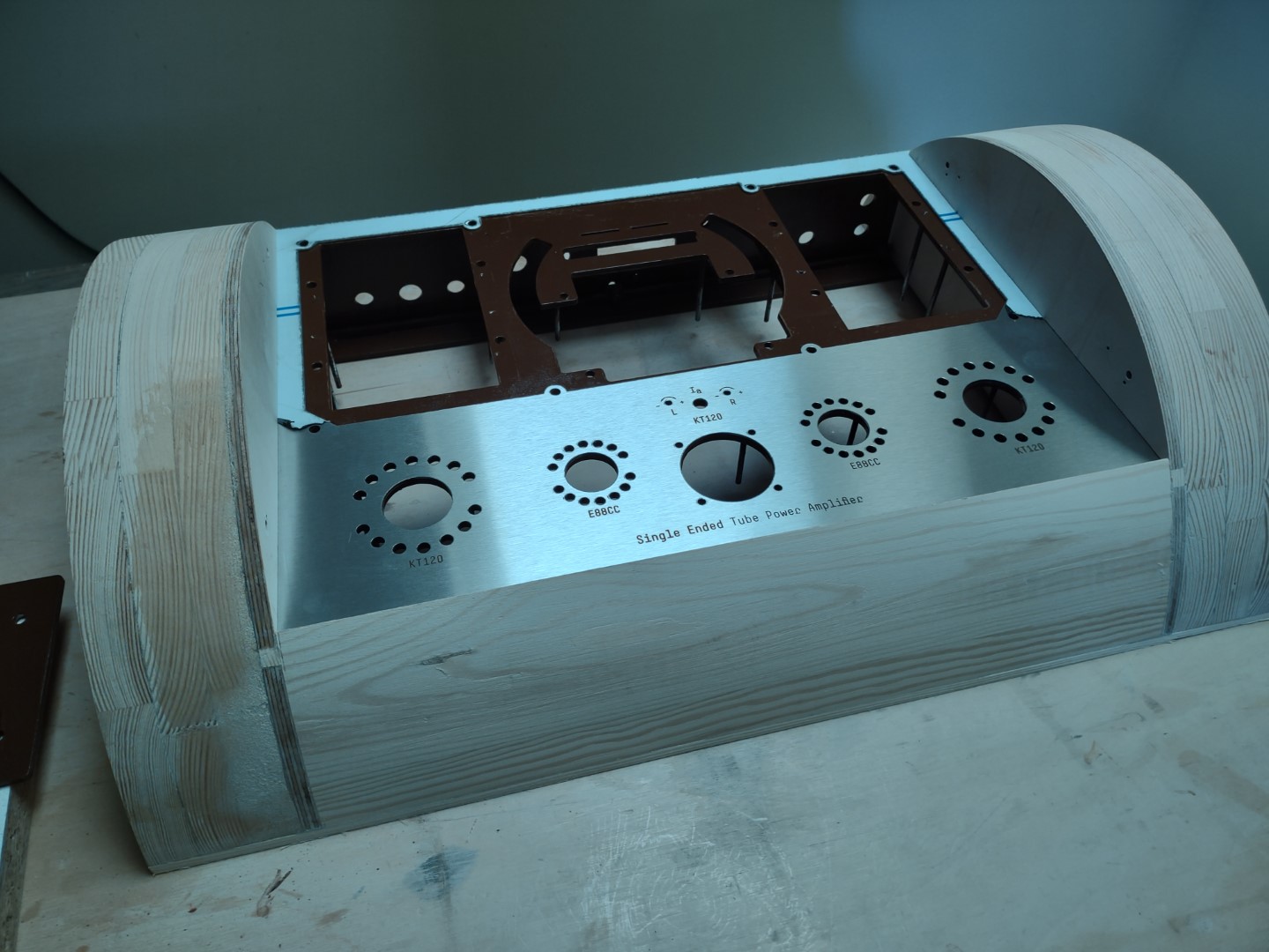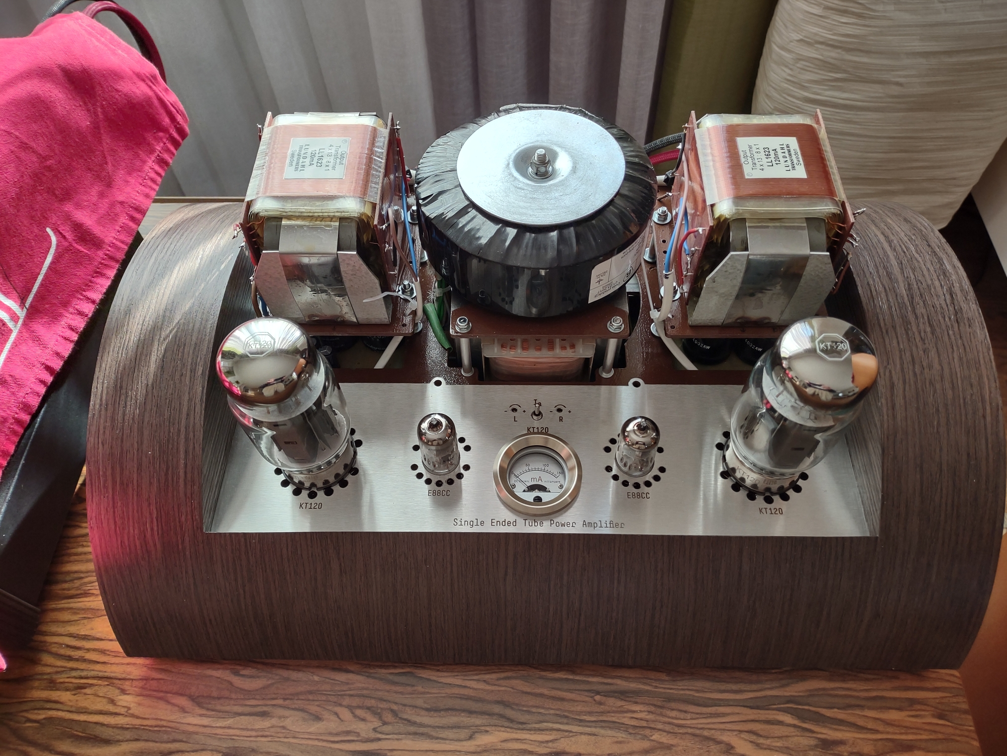 Ale mnie wierciło w środku aby pójść w trafa firmowe i zobaczyć czy i o ile one są "jeszcze lepsze". Przypadkowo wpadła mi w ręce para lamp KT120 więc zacząłem szukać jakiegoś schematu pod te lampy i w końcu stanęło na projekcie SE 2x ok. 20W pana Levena z Niemiec -> http://4tubes.com/2-SCHEMATICS/LUNDAHL- ... -KT120.htm. Ten projekt ewoluował sporo i były różne wersje różniące się głównie lampami wejściowymi (6N1P, 6N6P, ECC88, E88CC) - ja użyłem schematu z lampami E88CC.