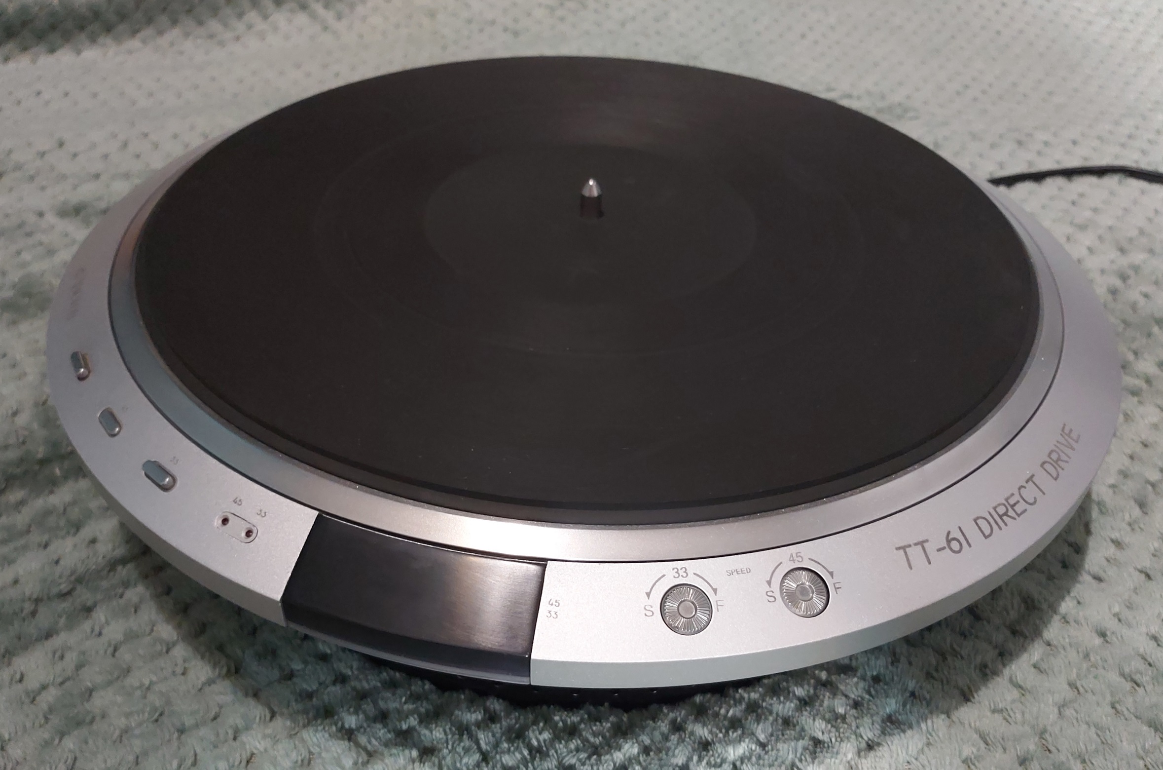 TT61 najniższy model ale dość ciekawy całkowity analog ale potki od obrotów mają swój urok Mechanicznie skończony wypiaskowany i od nowa polakierowany .Elektronika no cóż silnik sprawny płytki pomyte elektrolity wymienione ,zasilacz uruchomiony co ciekawe zasilany bezpośrednio ze 100VAC