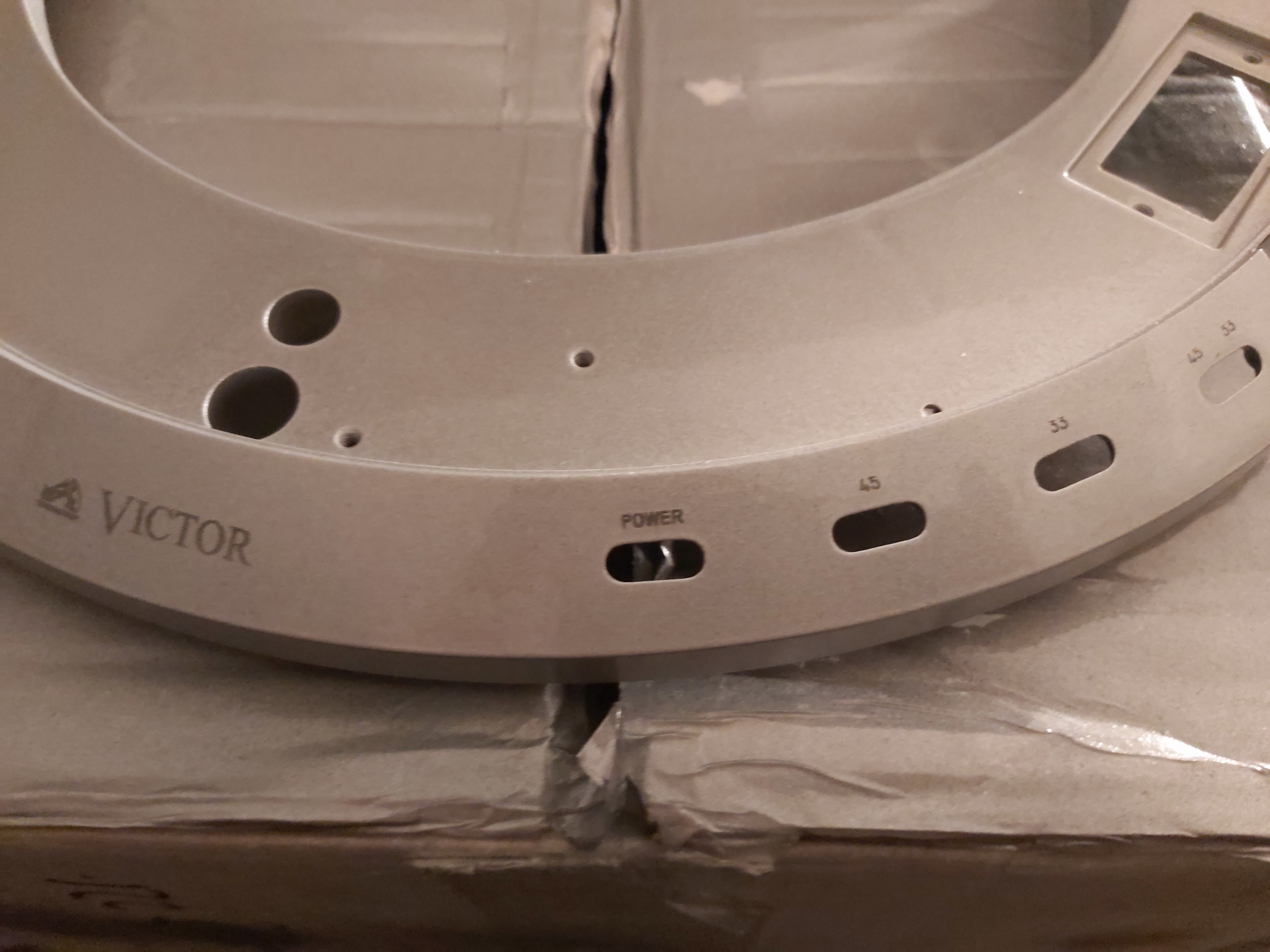 Miałeś jakiś szablon do ćwiczeń? Bo widzę lub wydaje mi się, że widzę, że r-ka nanoszenia tego laseru na największym napisie trochę się rozjechała z r-ką ściętego stożka podstawy gramofonu. Gratuluję odwagi, ja bym się chyba cykał zrobić to na gotowym elemencie. Coś czuję, że to była przygrywka do renowacji wyższych modeli