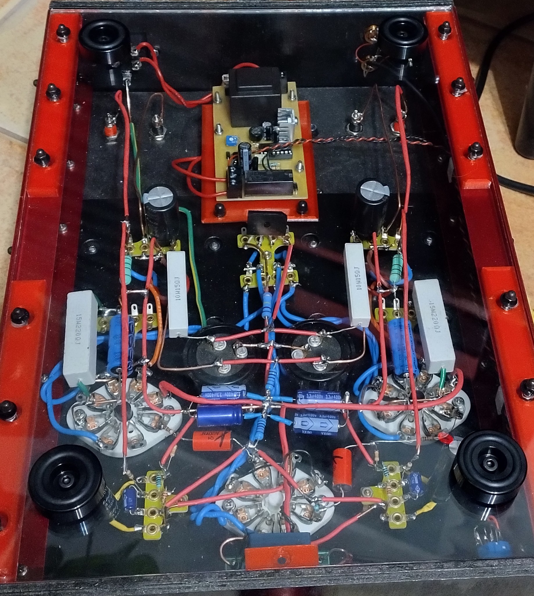 Zdjęcie środka spód z plexi ,trochę bajzel w środku ale młody wszystko polutował i wiecie co, jeden błąd i jedna korekcja napięcia i działa :lol: