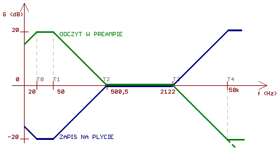 Korekcja RIAA, stałe czasowe / punkty zerowe: