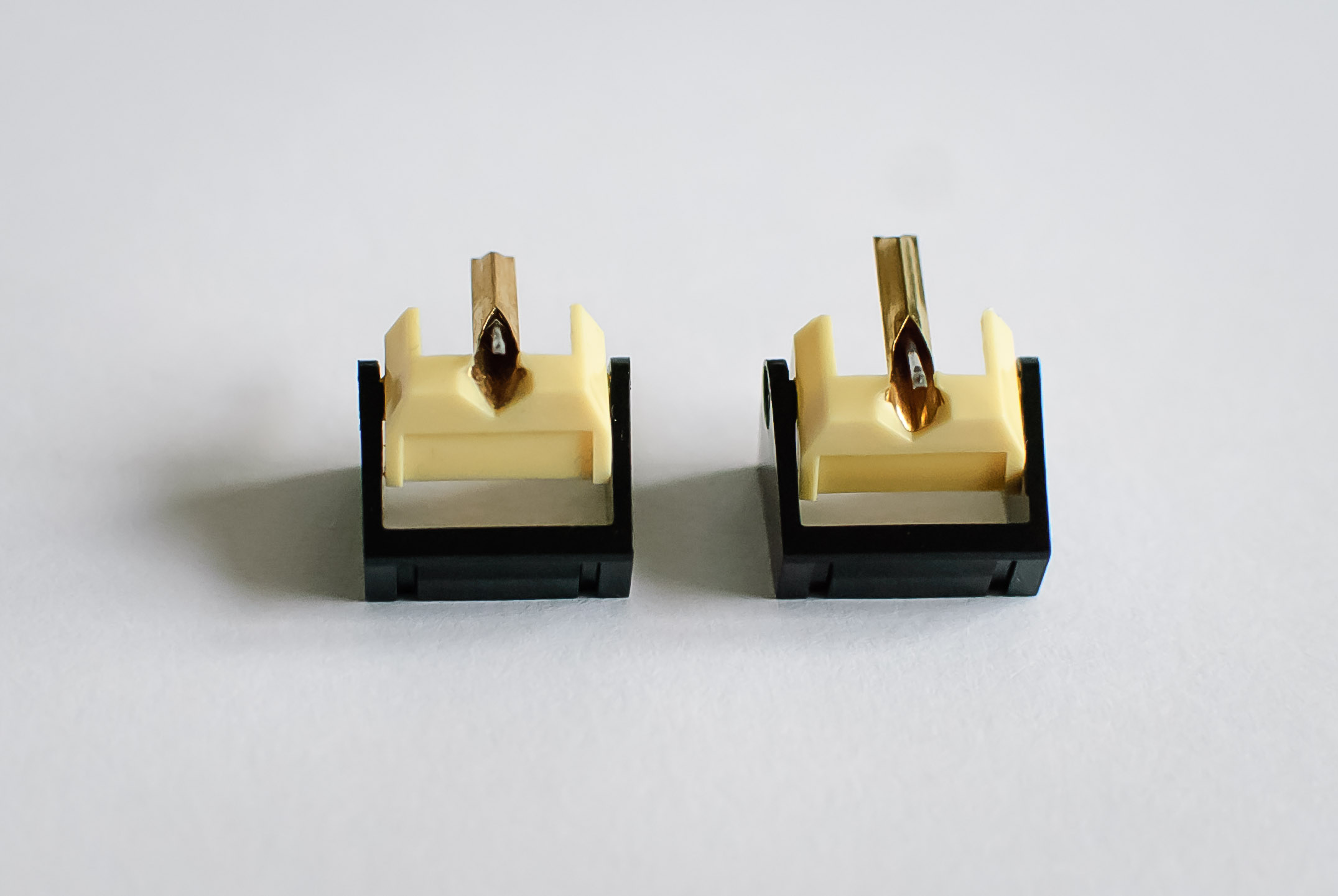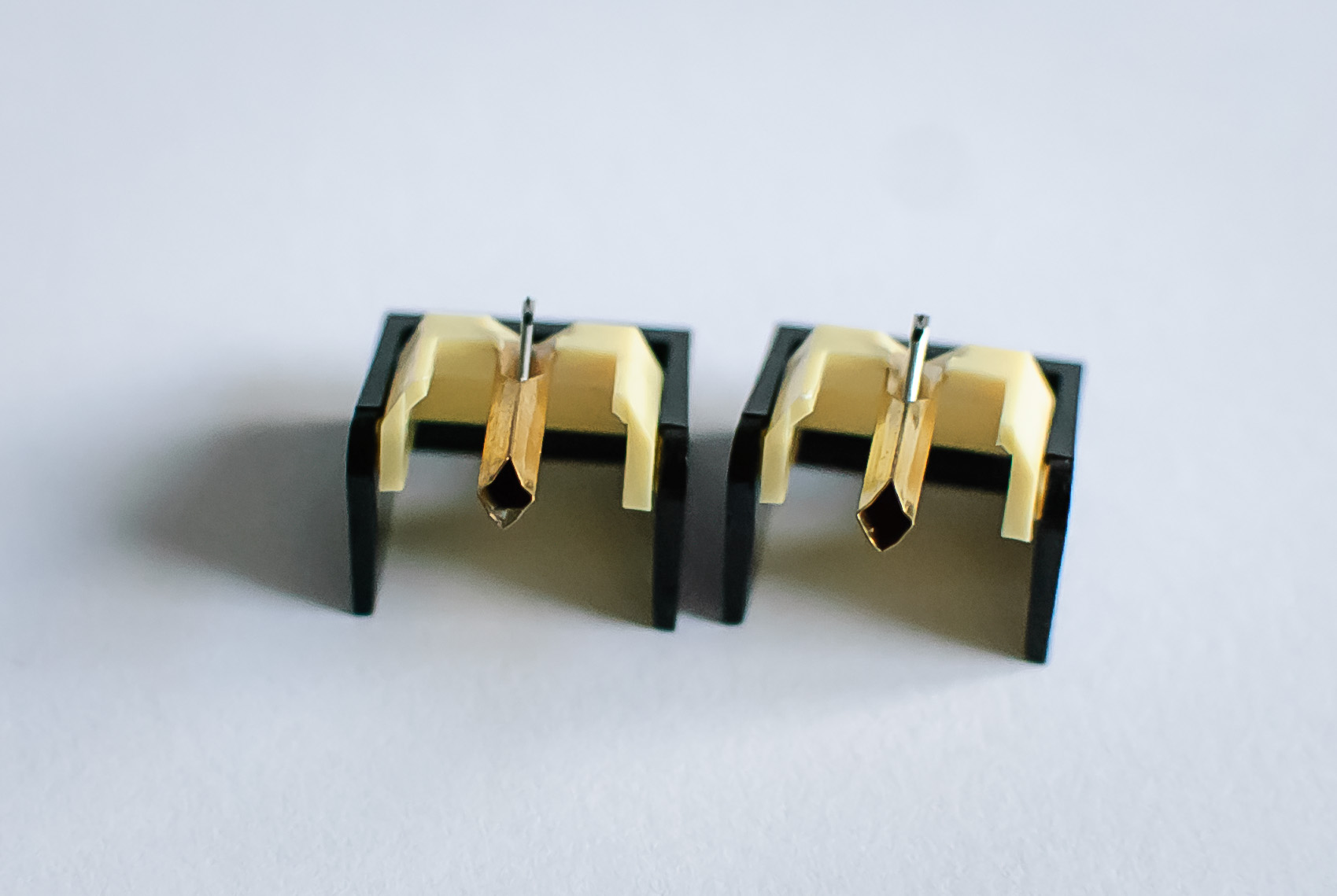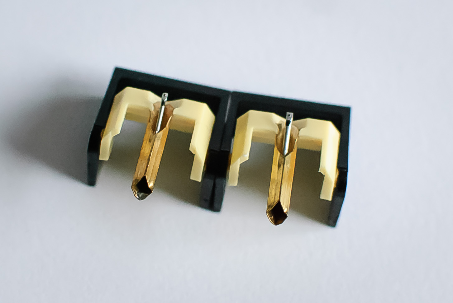Igła JICO kupiona u Thakkera jest już u mnie, zrobiłem kilka zdjęć samej i w parze z JICO, które kupiłem w Japonii. Jedna obok drugiej, igły bardzo podobne, niemal identyczne. Piszę - niestety - niemal, bo nie trzeba się przyglądać pod lupą żeby zauważyć dwie zasadnicze różnice między nimi. Poddaję więc temat pod Waszą ocenę, ogląd i opinię - wstępnie wizualną. Zdjęcia w dużych powiększeniach, żeby pokazać maksymalnie dużo szczegółów tych malizn.