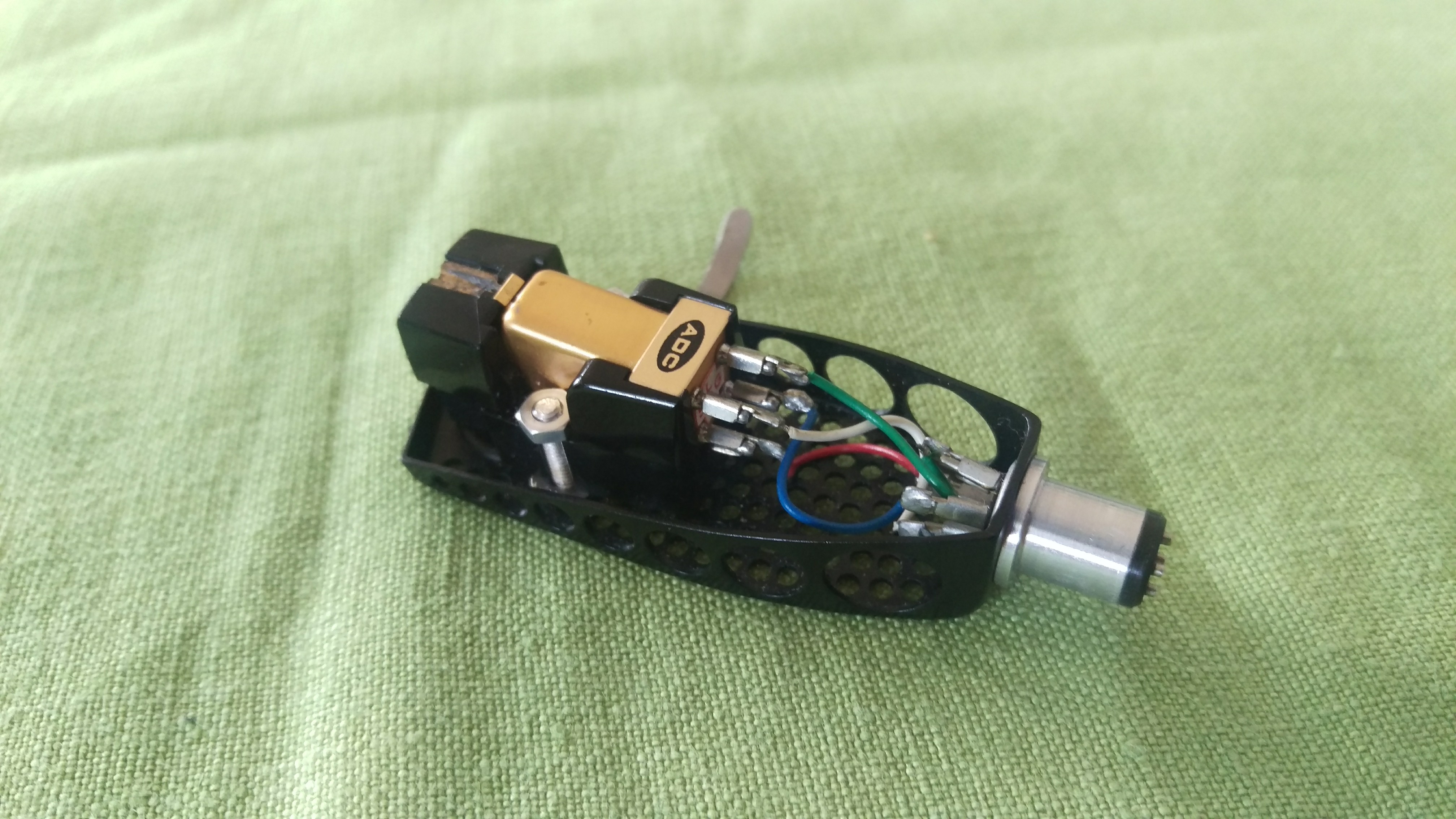 Wkładk ADC 10 E MK II. Igła uszkodzona. Poszperałem w necie i niestety wybór igieł niewielki. Zamówiłem pospiesznie NOSa z Astatic ale szybko to nie znaczy dobrze. Tak się napaliłem, że zamówiłem igłę ADC R15, która jest do ADC 10E ale MK IV. Tym sposobem poluję obecnie na igłę ADC R12 do MK II i body ADC 10E MK IV ( igłę już mam