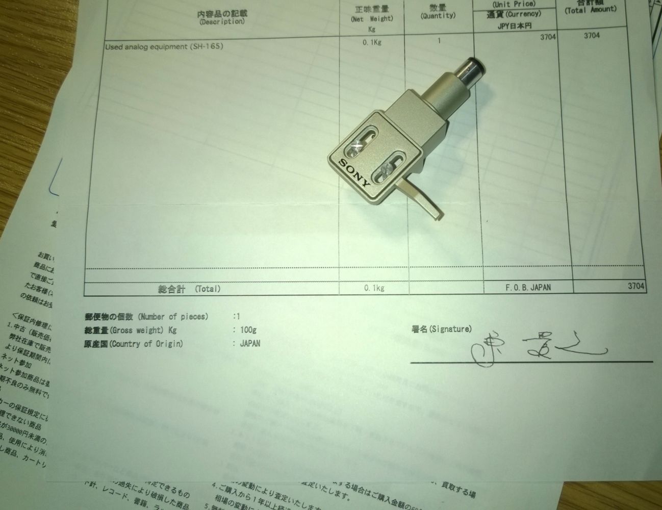 Najpierw pokażę headshell Sony SH-165 który właśnie przyniósł listonosz :