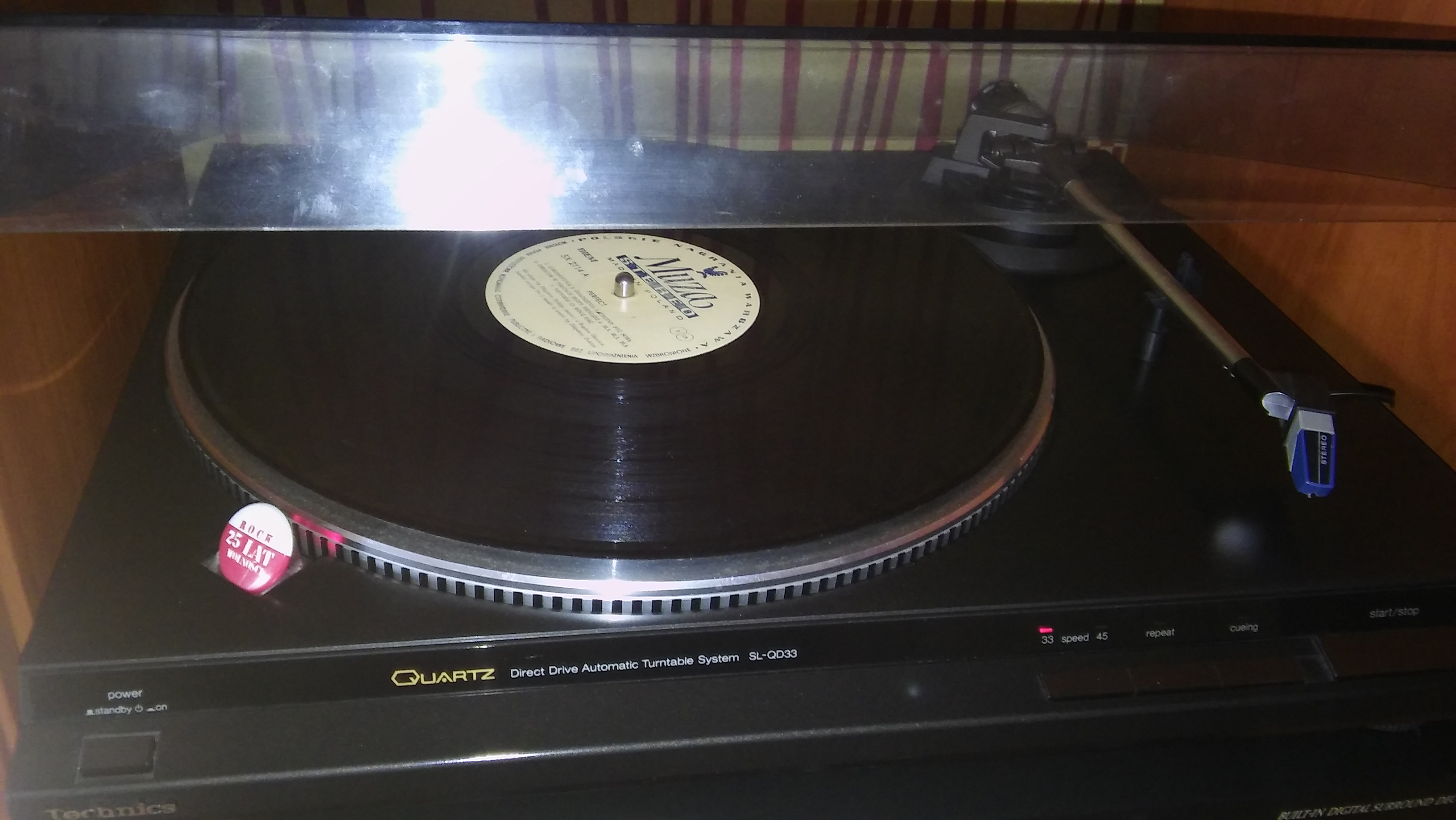 Witam na sprzedaż posiadam niezniszczalny japońskiej produkcji gramofon Technicsa Quartz Direct Drive Automatic Turntable System SL-QD33.Sprawny. Wszystkie funkcje działają bez żadnych problemow.Jest to jeden z najwyższych modeli zachowany jak na swoje lata w bardzo dobrym stanie.SL-QD33 posiada dodatkowo system automatycznego rozpoznawania rozmiaru płyty, przycisk włączający funkcję powtarzania płyty (bez końca) oraz obsługę windy ramienia (podnoszenie/opuszczanie) za pomocą przycisku.Okablowanie.