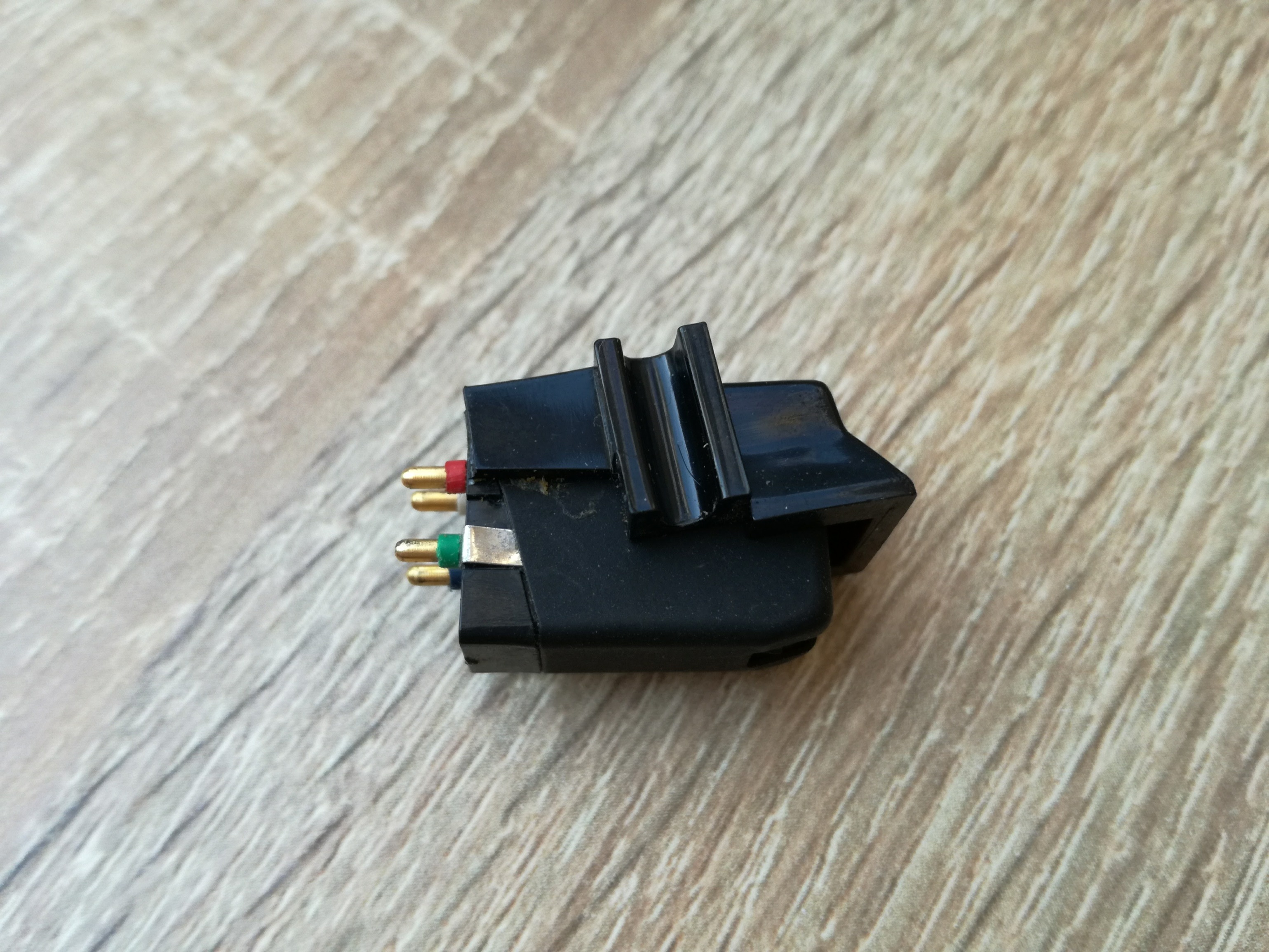 "Ryjek" jakby z Excel'a/Sanyo, podobne wcięcie, "zadek" też zbliżony. Do teorii shurowskiej nie pasuje mi ustawienie pinów, bo Shure w 90 % wkładek miał je umieszczone schodkowo, nie równolegle. Mam jakiegoś pseudo Shure'a, który ponoć był produkowany w Europie ale na licencji i tam piny idą tak samo i mają też kolorowe obrączki... Taką: