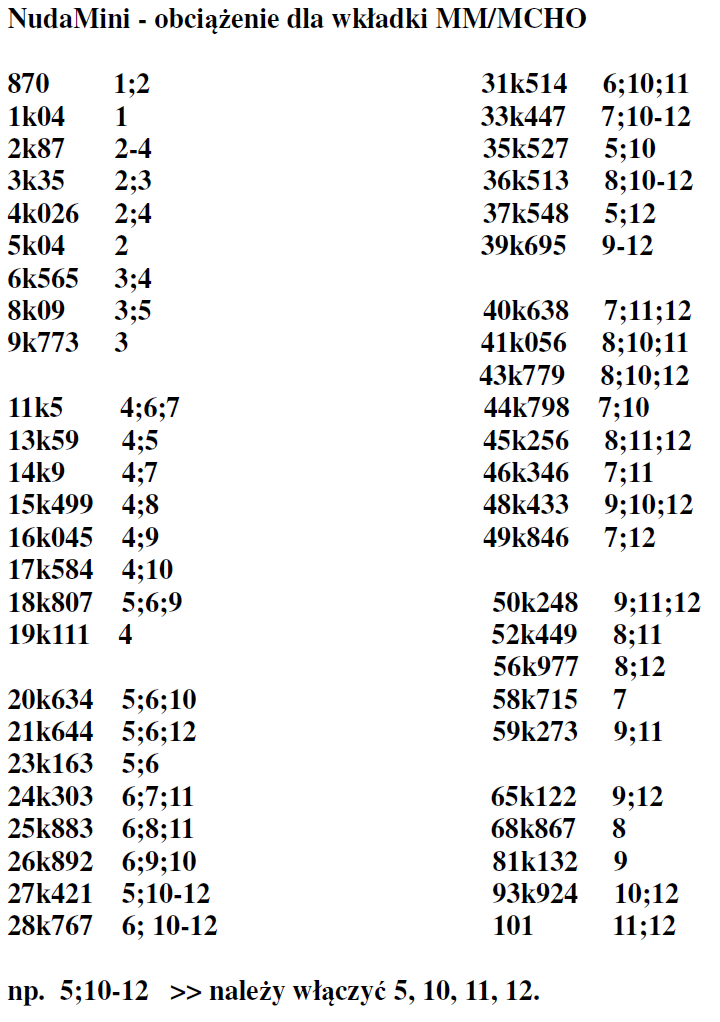 Nastawy dla NUDA mini, dla potomnych