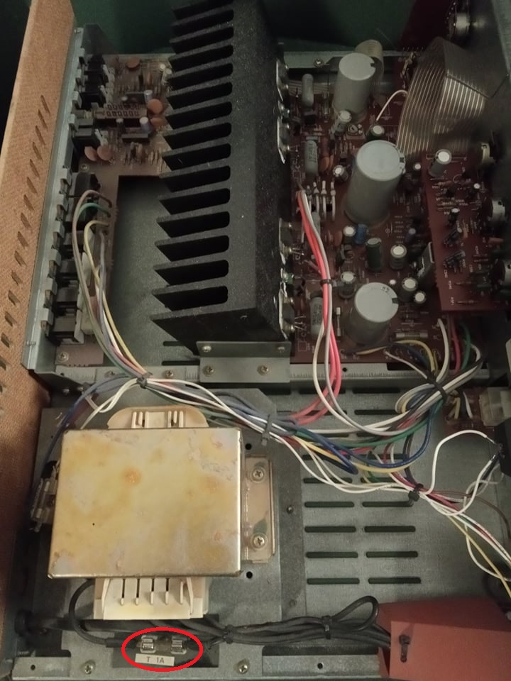 Mam problem z moim wzmacniaczem. Mianowicie pali się bezpiecznik zaznaczony na zdjęciach. Po włożeniu nowego i podłączeniu wzmacniacza nic się nie zapala i po chwili bezpiecznik jest spalony. Nie wiem czy to może mieć związek, ale od jakiegoś czasu przestawał mi czasami grać jeden kanał. Ktoś się orientuje co może być przyczyną i czy opłaca się to naprawiać? Będę wdzięczny za pomoc.