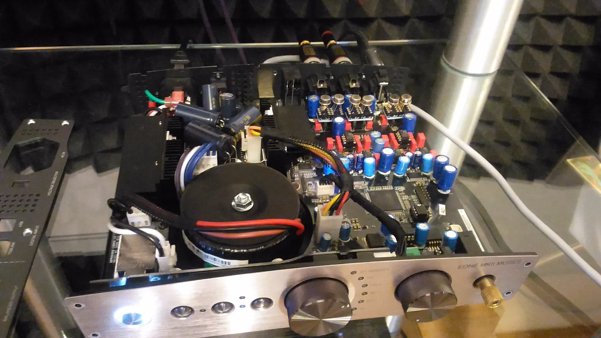 Ad. 4. ASUS XEO - DAC, czyli zewnętrzna karta dźwiękowa ASUS XONAR ESSENCE ONE MK-II MUSES Edition, modyfikowana. Niezły DAC choć nie warty swej ceny katalogowej. Przetwornik DAC sygnał cyfrowy zamienia na analogowy, który trafia na wzmacniacz. ASUS został poddany szeregowi modyfikacji. Najistotniejsze z nich to wymiana wszystkich kondensatorów elektrolitycznych oraz zmiana niektórych op-ampów. Ma wejście USB więc prócz DVD-DUNE jako źródła dźwięku korzystam także z laptopa.