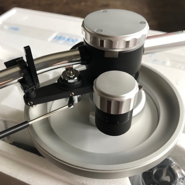 Ramię które będzie użyte do upgrade to Jelco TK-850s. Wprowadzono je do sprzedaży w zeszłym roku jako jedno w dwóch topowych ramion tej firmy: 850 oraz 950, przy czym 850-ka to ramię o statycznym VTA a 950-ka dynamicznym. Jelco ma masę efektywną 13,4g i może obsługiwać wkładki od 17 do 35g - liczone razem z headshellem. Co ważne geometria ramienia pozwala na mocowanie wkładek SPU beż żadnych przeróbek. Warto dodać że jest to ramię oparte o łożyska nożowe (knife edge) tak samo jak kultowe SME 3009. Oczywiście cała konstrukcja mieści się pod oryginalną klapą SL1200.