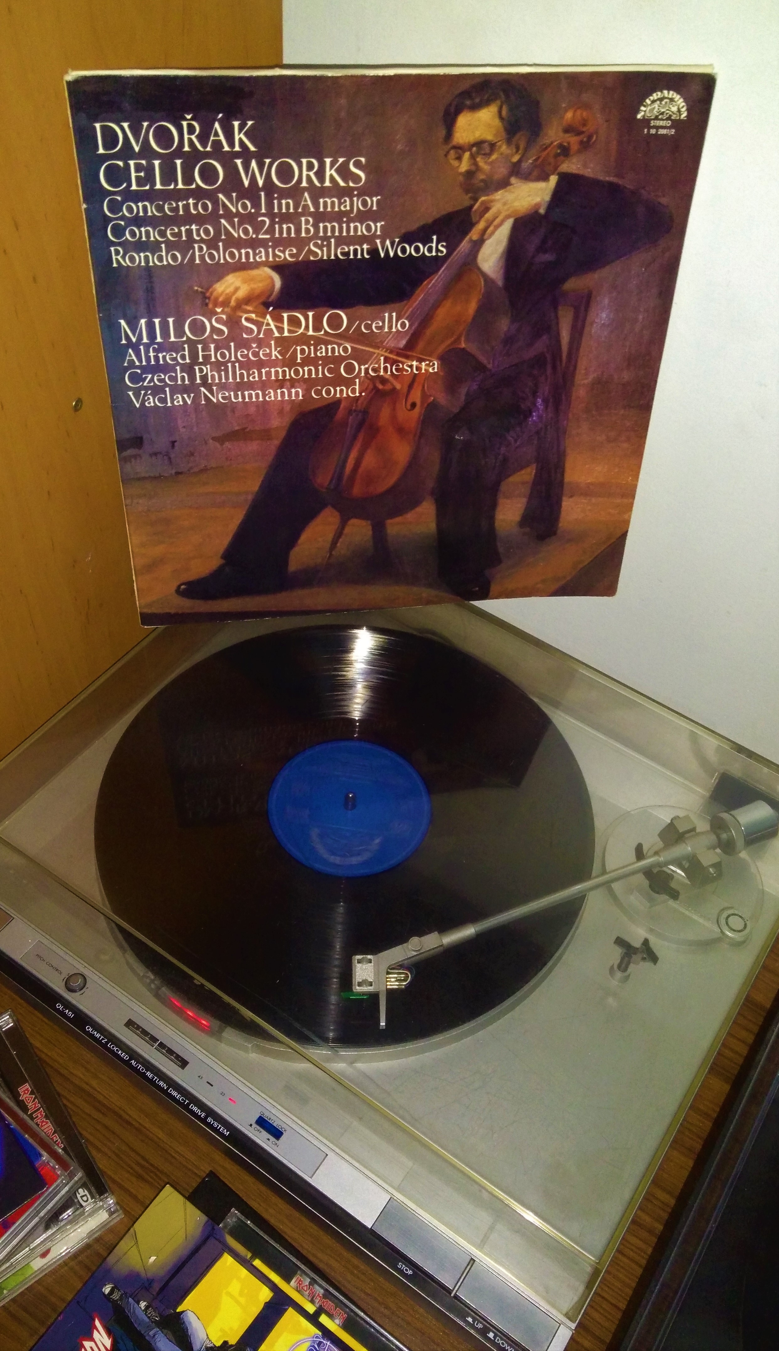 Antonín Dvořák - Dzieła na wiolonczelę: Koncert A-dur na wiolonczelę i fortepian, Koncert B-moll na wiolonczelę. Miloš Sádlo - wiolonczela, Václav Neumann - dyrygent, Czeska Orkiestra Filharmoniczna, Supraphon, Czechosłowacja, 1977.