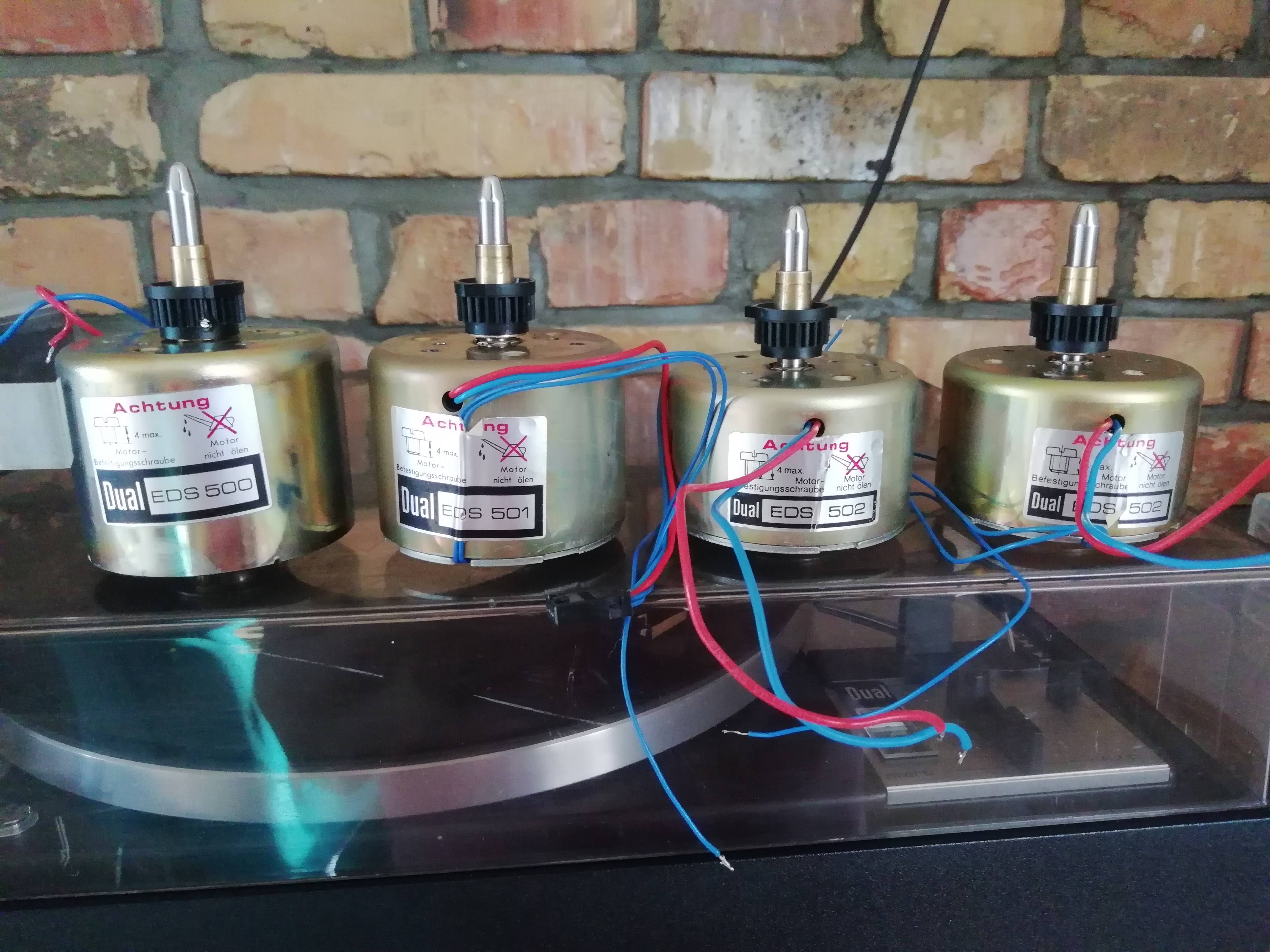 Na mój "warsztacik" trafił właśnie Dual z tym silnikiem (626). Dokładnie z pierwszą wersją EDS500. Napęd nie jest do końca sprawny. Kręci i to nawet stabilnie ale silnik hałasuje. Wydaje taki szeleszczący dźwięk, szczególnie zaraz po włączeniu. Gdy dłużej pokręci to hałas stopniowo zanika aż do całkowitej ciszy. Spotkałeś się z czymś takim? Mam nadzieję, że to sterowanie niedomaga a nie coś w środku. Ktoś już grzebał w elektronice i powymieniał tantale na elektrolity (0,47uF i 0,68uF) ale pozostawił wszystkie większe kondensatory (1000uF, 220uF, 47uF i 1uF). Liczę, że ich wymiana pomoże (tu jest na temat: https://www.facebook.com/reeveshifi/pho ... =3&theater). Jeżeli nie to będę szukał silnika. Na razie znalazłem na e-bayu za 150zł + KW. Te ze zdjęcia masz może na sprzedaż ;> ?
